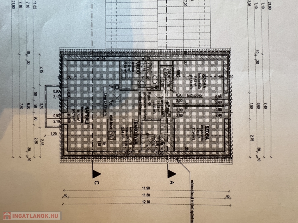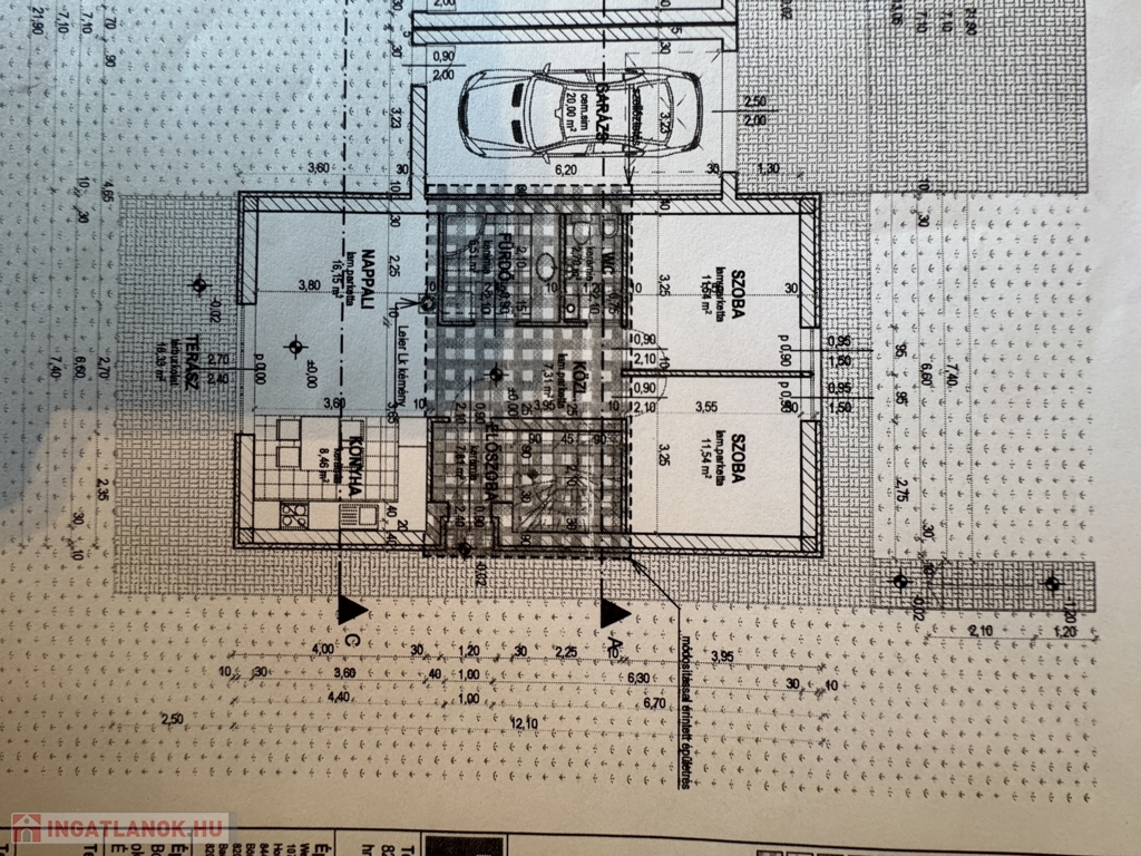 Földszint: amerikai konyhás nappali teraszkapcsolattal, 2 szoba (egyik klímás), fürdő, külön WC, garázs.