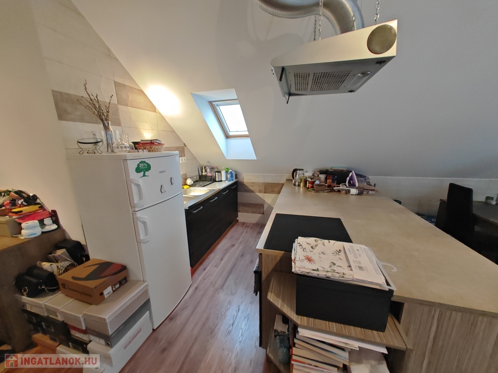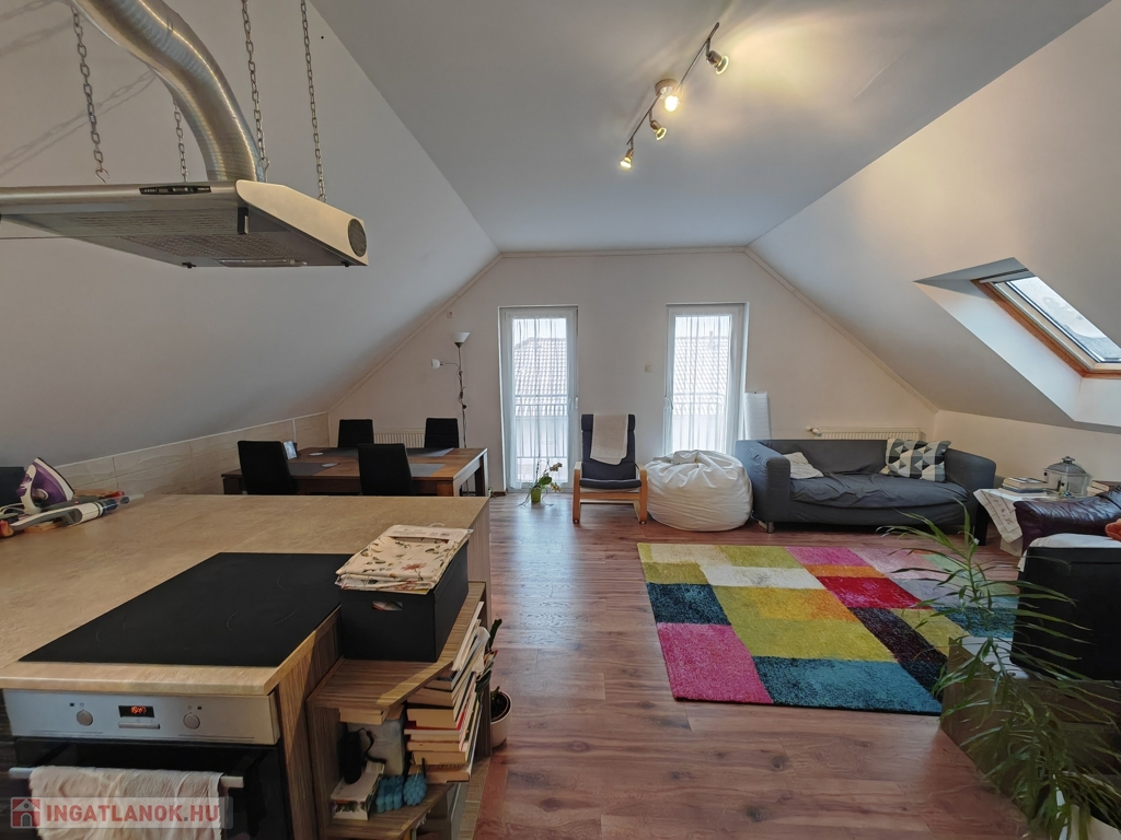 Tetőtér: amerikai konyhás nappali erkélykapcsolattal, 2 szoba, fürdő, külön WC.