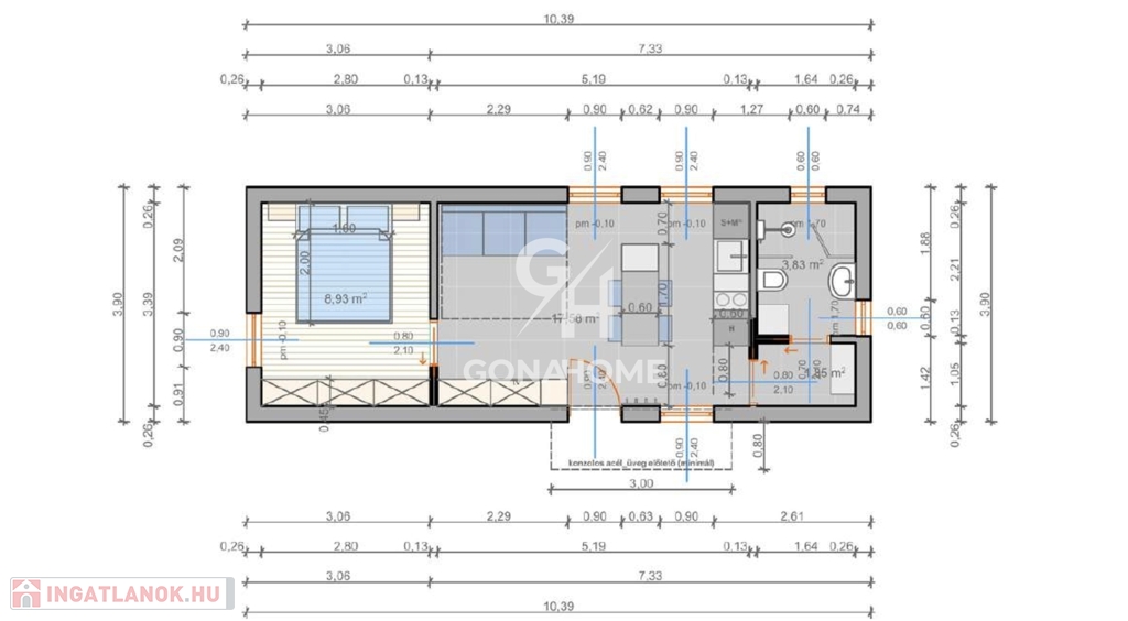 - Szoba: 8,93 m2