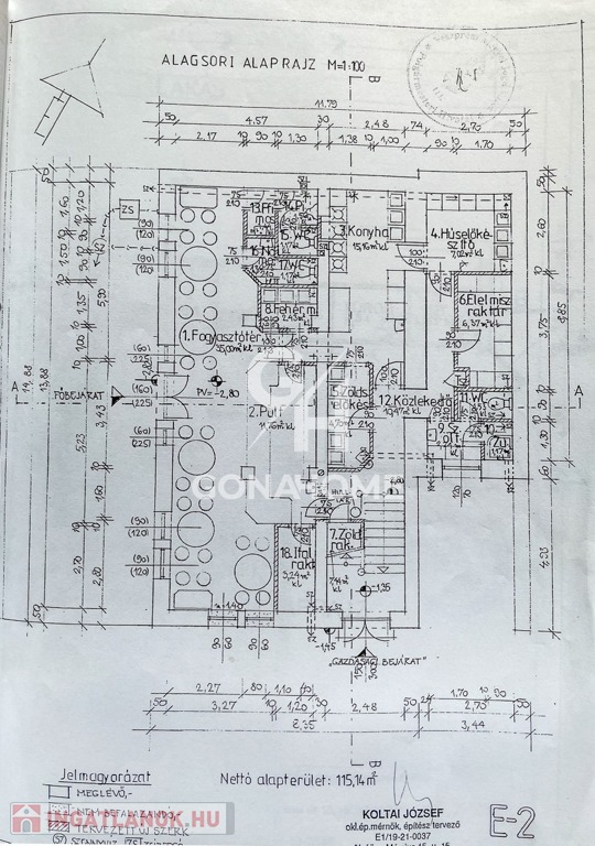 Étterem és vendégtér: 125 m² + kerthelyiség (~60 m²)