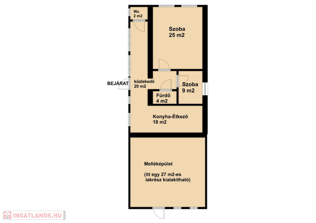 Az épület hátsó (jelenleg melléképületként funkcionáló) részéből egy kis garzonlakást lehet még kialakítani.