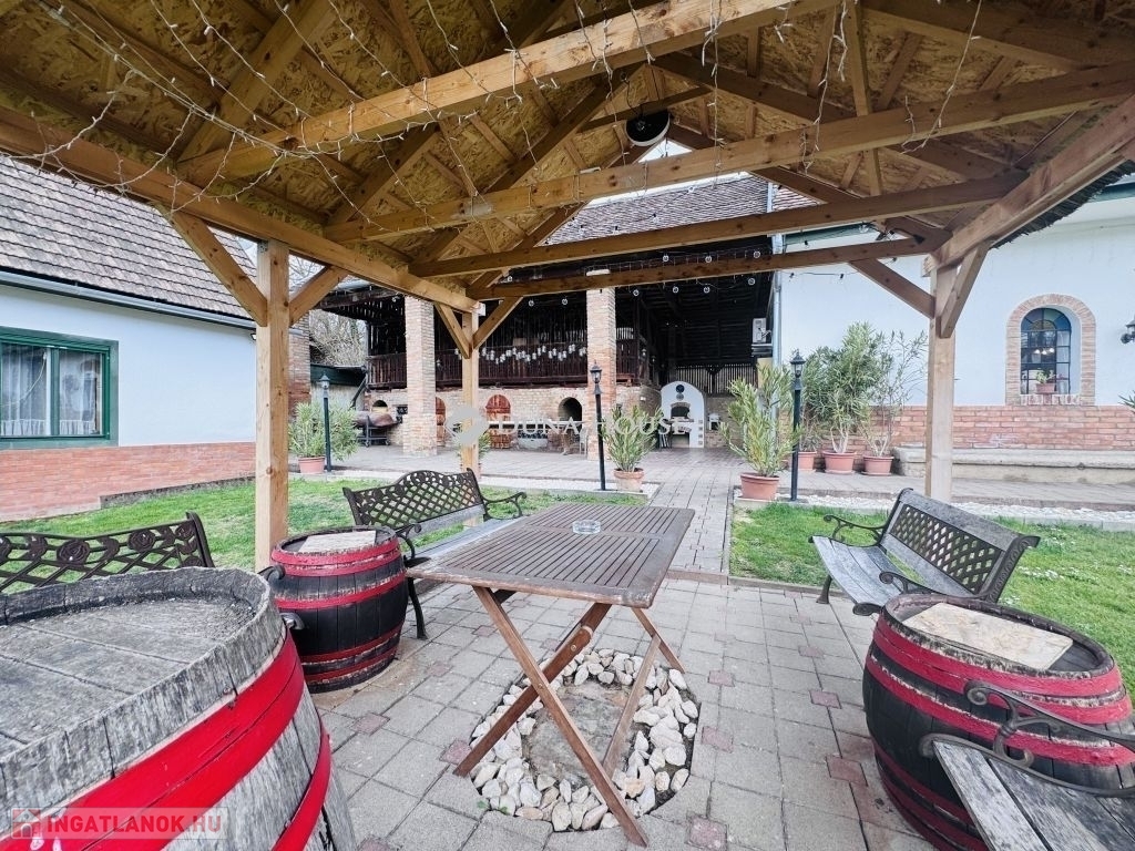 Egy különleges vendégház, lakóingatlannal, gyümölcsössel, eladó a villányi borvidék szívében, Villánykövesden.A híres villánykövesdi pincesortól mindössze 100 méterre kínálunk megvételre egy 15 éve sikeresen működő vendégházat, teljes berendezéssel, kialakult vendégkörrel és komplett online jelenléttel.Az ingatlan 5 vendégszobával rendelkezik (4 franciaágyas + 1 különágyas), melyek mindegyikéhez saját fürdőszoba tartozik, így akár 10-12 vendég kényelmes fogadására alkalmas.A vendégház mellett egy külön lakóház, egy közösségi (reggeliző) tér, nagy garázs, hangulatos udvar, valamint kiboltozott pince, nyári konyha kemencével és gyümölcsös is tartozik a birtokhoz.Az infrastruktúra átgondolt és gazdaságos:- vegyes tüzelésű kazán és gázfűtés,- H tarifa,- 6 kW-os napelemes rendszer (még évekig szaldós elszámolással),- szobákban klímák, fürdőszobákban elektromos kiegészítő fűtés (a kevésbé hideg napokra),- elektromos kapu, kiépített wifi- és kamerarendszer,- működő, ásott kút.Az ingatlan nem csak egy ház, hanem egy működő vállalkozás, amelyet a tulajdonos teljes berendezéssel, branddel, weboldallal és Facebook oldallal együtt ad át.Ideális választás annak, aki a villányi borvidéken szeretne turisztikai vállalkozást vagy akár életmódváltást kiszakadva a város zajából.Ha egy valóban pozitív energiájú, különleges hangulatú, azonnal működtethető vendégházat keresel, ezt a birtokot mindenképp érdemes megnézned.