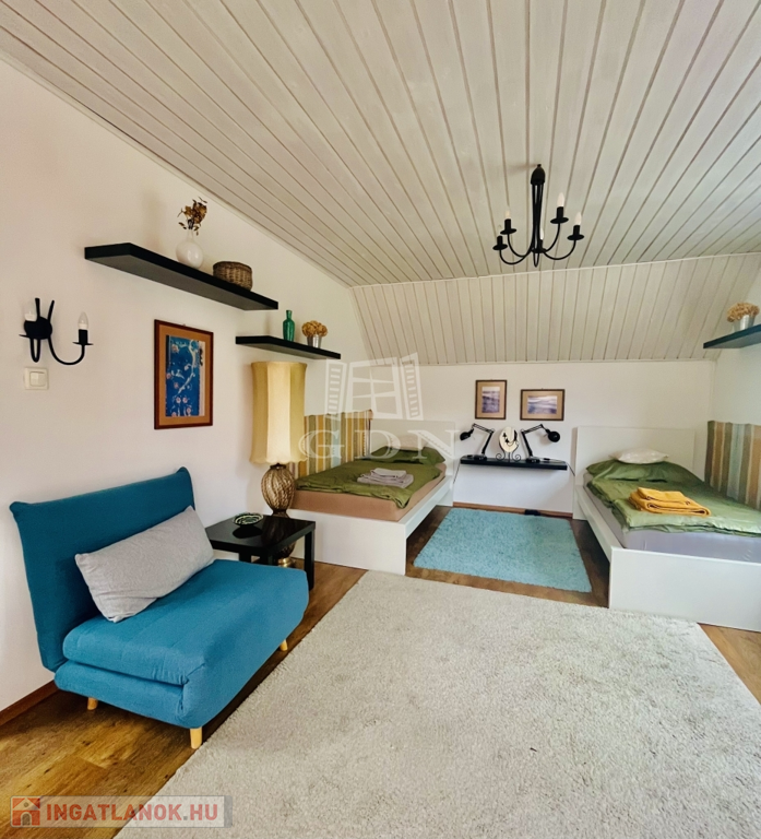 Az 1200 négyzetméteres, gyönyörű, panorámás, páratlan helyen lévő telekre épült 300 négyzetméteres 5 szobás, nagy teraszos ház jelenleg vendégházként működik és ezt természetesen folytathatja a következő tulajdonos is, ezért befektetésre kifejezetten ajánlott. A jelenlegi működtető cég is megvásárolható hozzá.