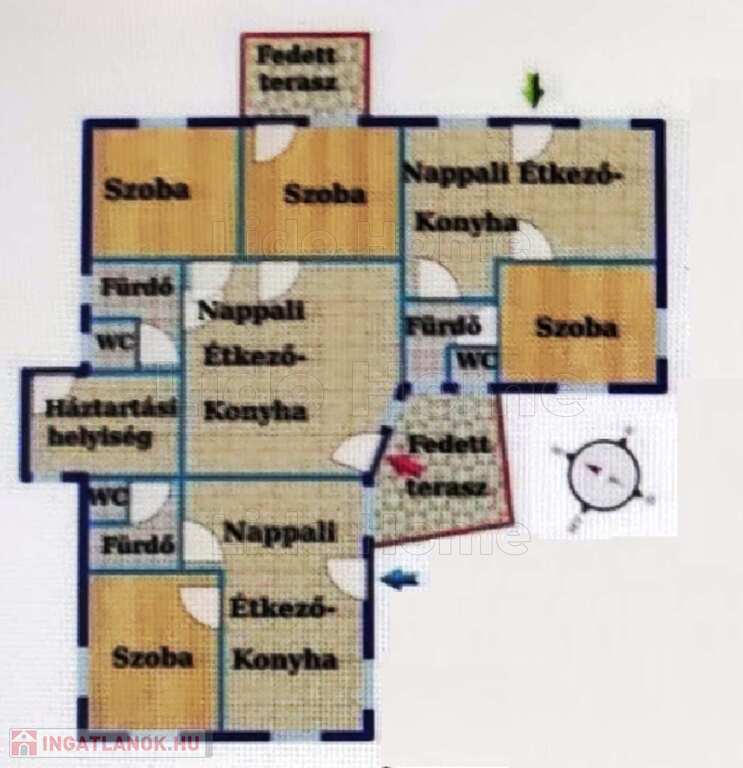 2. Apartman: nappali- konyha-étkező, hálószoba, fürdőszoba + WC