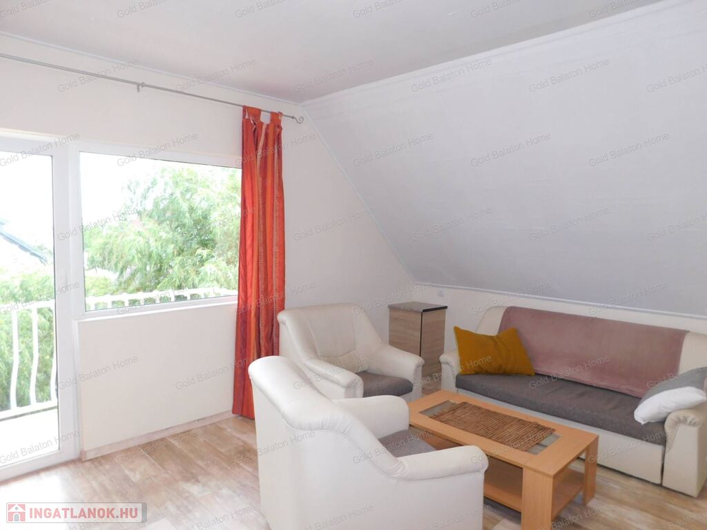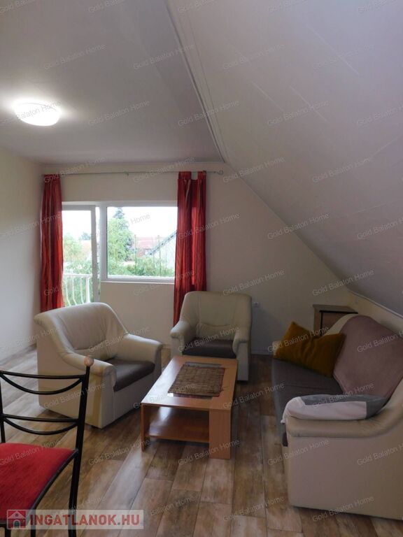 - tetőtér: lépcsőház, társalgó, nappali – konyha, balatoni panorámás erkély, 2 hálószoba, fürdőszoba káddal + fürdőszoba zuhanyzóval +WC