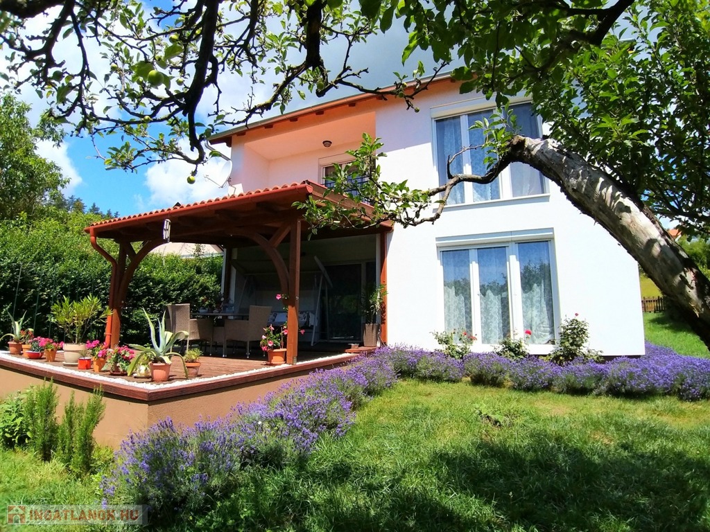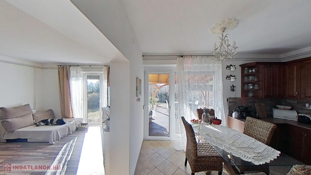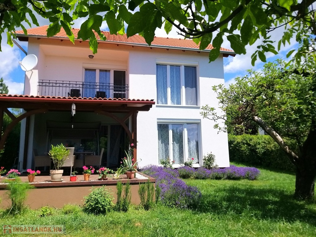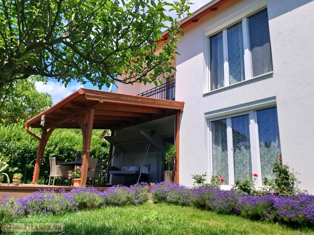 A teljesen felújított házat érdemes virtuálisan bejárni, hiszen rendkívül minőségi kivitelezéssel épült, részpanorámával a Balatonra. A kert, terasz a kíváncsi szemek elől magas, zöld sövénykerítéssel védett.