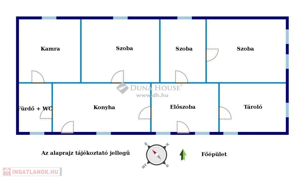 - Nyílászárói: fa ajtók, ablakok