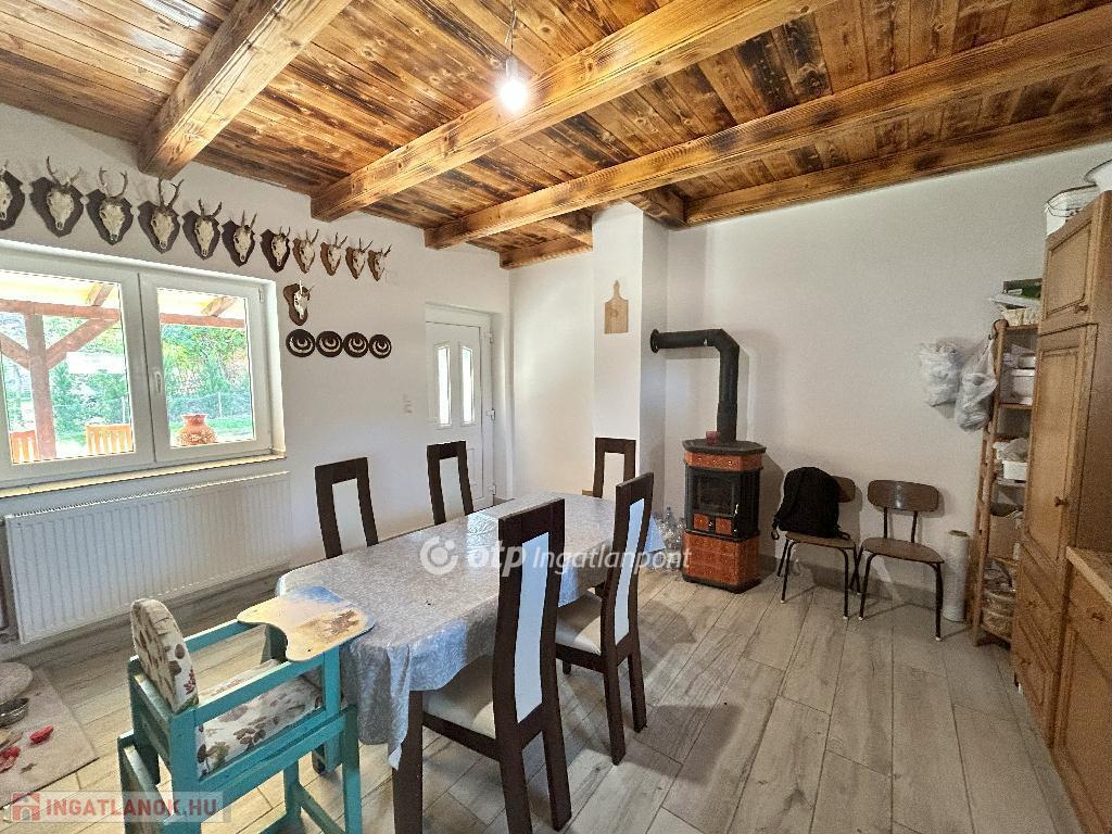 Csendes zsákfalu, nyugalom és vidéki élet várja új tulajdonosát ebben a felújított házban. A két nagy szoba hajópadlóval és gerendás mennyezettel készült, a többi helyiség kerámialappal burkolt, miközben a gerendás mennyezet végig kíséri az egész házat, hangulatos és karakteres tereket teremtve.