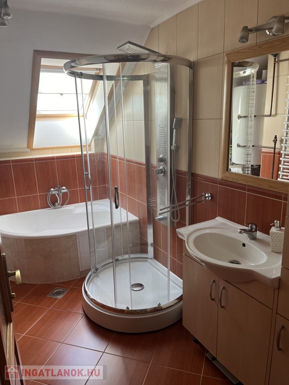 Zala megye, Zalaapáti 250m2-es kétszintes családi ház melléképületekkel, műhellyel eladó. A 3427m2-es telken található ingatlan a 80-as évek elején épült, 1995-ben került sor az átalakítására, majd 2010-ben és 2020-ban további átalakítások és felújítások történtek, mire elnyerte jelenlegi, tetszetős és modern állapotát. A részben alápincézett lakóház igényesen kialakított fogadószintjén közlekedő, konyha, kamra, nappali, hálószoba, dolgozószoba, fürdőszoba és illemhelyiség, míg a lépcsőházból megközelíthető, külön bejáratú emeleten további három szoba, konyha+étkező+nappali, fürdőszoba és illemhelyiség került kialakításra. Valamennyi szinten nagyméretű erkély is található, ahonnan többi között a Zala folyó völgyét is megcsodálhatjuk. A klimatizált, ingatlan melegéről fatüzelésű kazán gondoskodik. A telken több melléképület is található, közte központi fűtéssel ellátott, nyári konyhával, vizes blokkal kiegészített műhely/raktár (200m2), 3db garázs automata kapukkal, fedett gépjárműbeálló, és egy különálló műhely (280m2).
