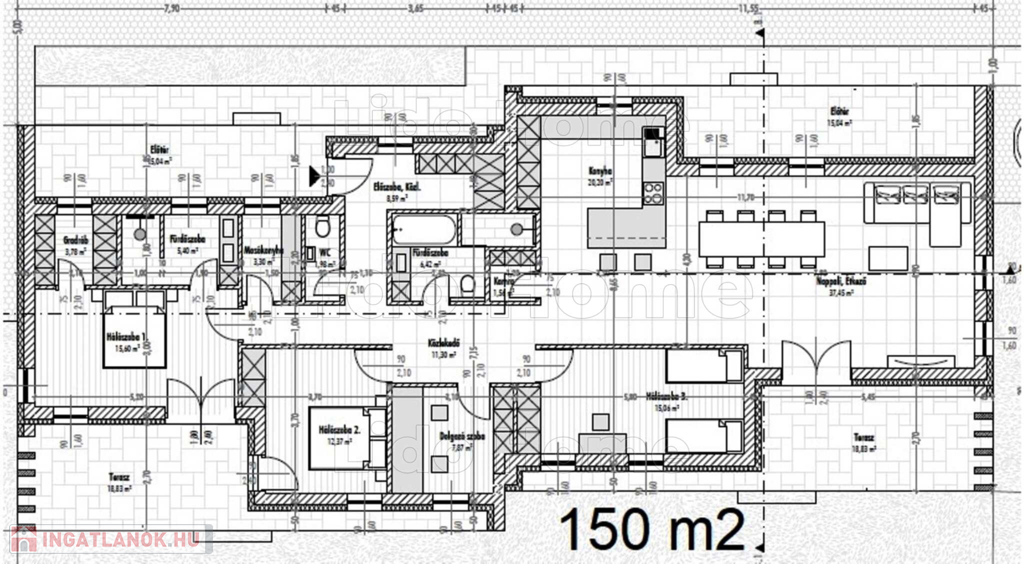 - 150 m2 + 2*18,83 m2 es erkély – Ár: 115 Mft