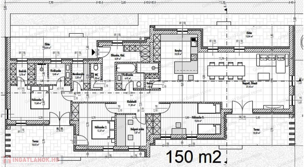 - 150 m2 + 2*18,83 m2 es erkély – Ár: 115 Mft