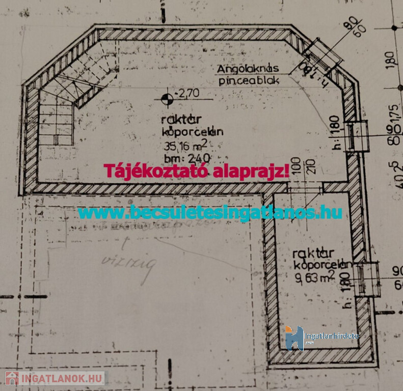 • Pince: 74 m², ahol egy két részből álló konditerem üzemel padlószőnyeggel, így akár sportolóknak, vagy bérlőknek is otthont adhat – de lehet tároló, műhely vagy akár egyéb szabadidős tér is..