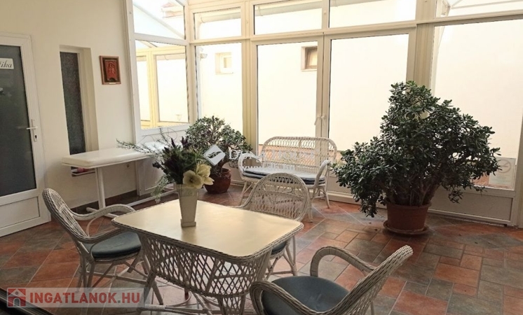 -a földszinten működő igényes kozmetika 70 m2-en, valamint egy külön lakrész fürdővel, konyhával, szobával, valamint pazar télikert és szauna