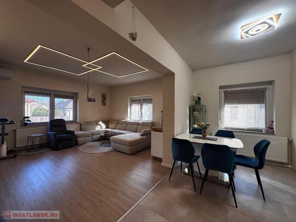 A belső terek kialakítása tágas, modern és kényelmes, ahol a funkcionalitás és az otthonos hangulat tökéletesen találkozik. Az ingatlan központi része a tágas amerikai konyhás nappali + étkező, ahol az új, gépesített konyhabútor, az igényes burkolatok és a kellemes térérzet igazán élhető otthont teremtenek.