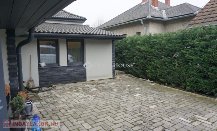 Alacsony rezsi költséggel üzemeltethető, ami köszönhető a szigetelésnek, (falakon 20 cm, födémen 35cm, az aljzatszigetelés pedig 15 cm-es vastagságban történt), és a korszerű 3 rétegű nyílászáróknak. Az épület egy gondozott 650 nm-es sík körbekerített telken található, ahol van még egy 27 nm-es könnyűszerkezetes szigetelt garázs, illetve egy 2 gépkocsi számára kialakított fedett beálló. Az udvar egy része térkövezett, illetve egy kb. 300 nm-es rész pedig gondozott füvesített terület. A ház intimitását az udvart körbe ölelő kb. 2 m magas zöldsövény biztosítja, aminek öntözése saját kútból történik. Remek választás lehet több gyermekes családnak akiknek fontos a belváros közelsége.