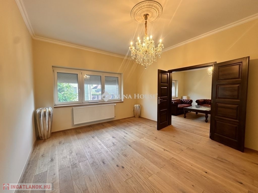2025-ben FELÚJÍTOTT CSALÁDI HÁZ ELADÓ!Amennyiben egy igazán karakteres, megújult és klasszikus értékeket képviselő családi ház után kutat Zalaegerszeg polgári-családi házas környezetében, úgy Önnek ajánlom ezt a kivételes és semmivel sem összehasonlítható családi OTTHONT.Eladó ez a 222 m2-es, 2000-ban újraépített és bővített, majd 2025-ben teljesen megújult, kétszintes, polgári stílusú, klasszikus családi értékeket képviselő téglaépítésű családi ház.Az ingatlan elhelyezkedése, a kiváló lokáció, a nyugodt szomszédság, az udvarra nyíló intim nézet, a jó fényviszonyok, a kellemes klíma, a régmúlt idők nosztalgikus életérzése egy igazán meghitt otthon élményét nyújtja. Átgondolt, precíz tervezést és a minden - mindennel összhangban lévő enteriőr jellemzi.A házban található helyiségek kényelmet és jól élhető tereket kínálnak.Földszinten: egy tágas és igazán ízlésesen berendezett gyönyörű cserépkályhával ellátott nappali, három egymásból nyíló szoba, ami külön-külön is megközelíthető, konyha ami kapcsolatban áll az étkezővel, a fürdőszoba, melyből az egyik közvetlenül a gardrób mellett áll, különálló WC, optimális méretű spejz, és egy hatalmas, világos előszoba, a gyönyörű fából készült lépcsőházzal.Emeleten: világos, egybefüggő élettér ( nappali) amelyből nyílik a három hálószoba, egy fürdőszoba, két különálló terasz.A ház téglafalai 40 + 60 cm-es így a télen meleg, nyáron hűvös, kiváló klímájú otthon biztosított.A nyílászárók tripla üvegezésű fa keretekkel és szúnyoghálóval ellátottak. A ház fűtése cirkó-gázkazánnal történik, radiátoros hőleadással. Továbbá egy csodás cserépkályha gondoskodik az otthon melegéről és teszi meghitté és varázslatossá azt.A 222 m2-es családi ház 872 m2-es zöld, sík, udvarral rendelkezik, melyen egy nagy 50 m2-es önálló garázs áll és ami további elegendő pakolási helyet biztosít.Ha a hirdetésem felkeltette az érdeklődését és valós vételi szándékkal rendelkezik akkor hívjon és tekintsük meg az ingatlant.Hitel és CSOK kérdésekben irodánkban teljeskörű felvilágosítást kap, hiteltanácsadó kollégánk készségesen áll vevőink szolgálatában.
