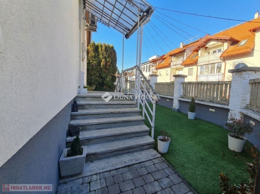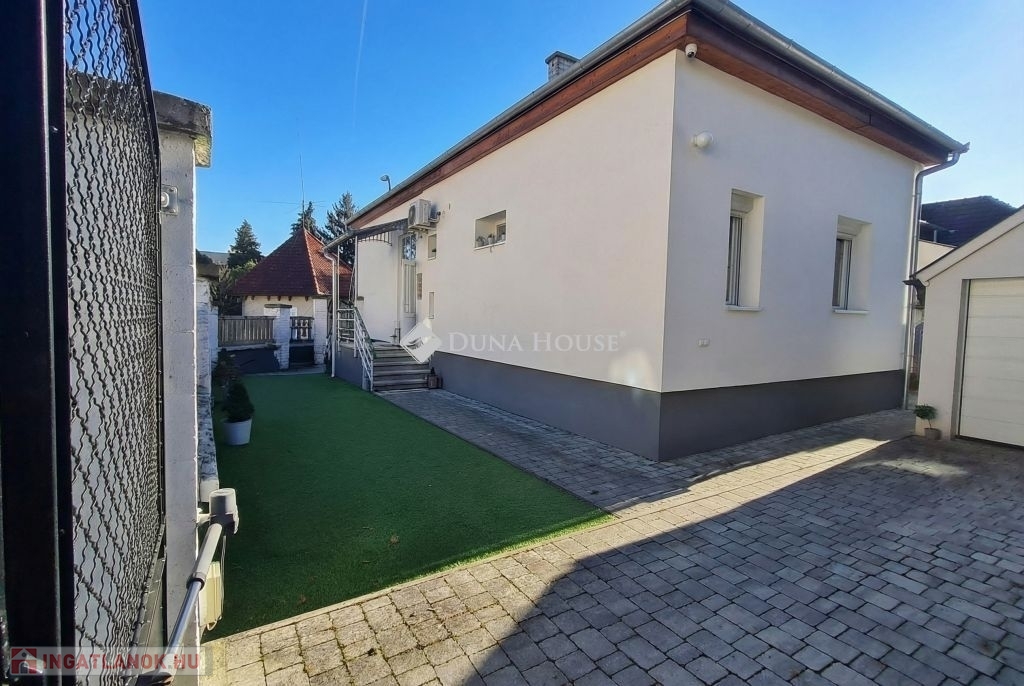 Polgári stílusú, téglaépítésű családi ház eladó kiváló lokációval ZalaegerszegenZalaegerszeg egyik frekventált részén kínáljuk megvételre ezt az egyedi hangulatú, polgári stílusú, téglaépítésű családi házat, amely teljes értékű lakóingatlanként, valamint többcélú hasznosításra is kiválóan alkalmas.Az ingatlan elhelyezkedése kiemelkedő: a Zala Megyei Szent Rafael Kórház hátsó bejáratánál található, ami kimondottan ideálissá teszi orvosi rendelő, egészségügyi szolgáltatás, ügyvédi iroda, magánpraxis vagy egyéb szolgáltatói tevékenység kialakítására is.Ingatlan főbb jellemzőiTelek mérete: 256 m²Lakótér földszint (összesen 117 m² a tetőtérrel együtt):amerikai konyhás nappali2 szobafürdőszoba WC-vel2 különálló WCközlekedőEmelet / tetőtér:2 külön nyíló szobaközlekedőPince:38 m², több helyiségből áll, kiválóan hasznosítható (tárolásra, irattárnak, kiszolgáló funkciókra)Udvar:15 m²-es, Lindab lemeztetővel fedett, szigetelt garázs, elektromos kapuvalaz udvar részben térkövezett, részben műfűvel burkolta teljesen körbekerített udvarra elektromos kapun keresztül jutunk beMűszaki állapotAz ingatlan 2018 tavaszán teljes körű felújításon esett át:15 cm-es hőszigetelésvíz- és villanyvezetékek teljes cseréjeháromrétegű, hőszigetelt műanyag nyílászárókmodern konyha és igényes fürdőszobafűtés és melegvíz ellátás: Ariston gáz-cirkó kazánDaikin hűtő-fűtő klímaberendezés3 fázis, 3×25 Amper elektromos hálózatBiztonság: kiépített kamerarendszer és riasztó.Sokoldalú felhasználási lehetőségekAz ingatlan kialakítása és elhelyezkedése miatt:kiváló családi háznak,ideális orvosi rendelőnek, magánpraxisnak,alkalmas ügyvédi irodának, könyvelőirodának,vagy bármely egészségügyi, szolgáltatói, irodai tevékenység számára.A kórház közvetlen közelsége miatt az egészségügyi szolgáltatások nyújtására kiemelten előnyös lokációval rendelkezik.Miért érdemes ezt az ingatlant választani?kiváló elhelyezkedés a Szent Rafael Kórház közvetlen közelébenpolgári stílusú, elegáns megjelenés2018-ban teljes körűen felújított, kiváló műszaki állapottöbbfunkciós hasznosíthatóság: lakó- és üzleti célra egyarántsaját udvar, garázs, pincenyugodt környezet, mégis frekventált elhelyezkedésEz az ingatlan ritka lehetőség Zalaegerszegen: ideális választás mindazok számára, akik egy értékálló családi otthont, vagy egy kiváló adottságokkal rendelkező rendelőt, irodát, szolgáltatóteret keresnek kiemelkedő lokációval.