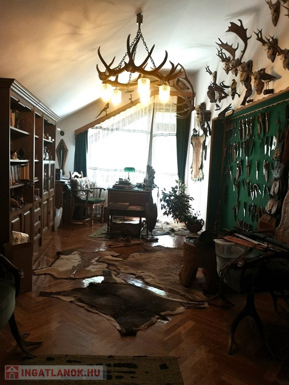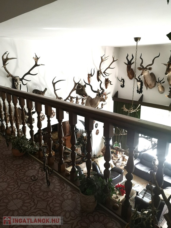 Zala vármegye, Zalaegerszeg, 530m2-es családi ház eladó. A zalai megyeszékhelyen, Alsóerdő közelében található ingatlan 1897m2-es, parkosított telken helyezkedik el. Az udvaron vízforgatós medence, kerti kiülők, szaletli, stb. szolgálja az ott tartózkodók kikapcsolódását. A 80-as évek elején épült, tehermentes ház garázsszintjén a duplagarázson kívül kazánház, 2 tágas tároló, lépcsőház, közlekedő, szauna, konyha és borozó, a fogadószinten nagyméretű, légkondicionált, teraszos nappali, két erkélyes szoba, fürdőszoba, lépcsőház, közlekedő, konyha étkezővel és kamra, az emeleten további négy szoba, (melyekből kettő erkélyes), gardrób, közlekedő, lépcsőház és fürdőszoba, végül a beépített tetőtérben társalgó, tároló és konditerem került kialakításra. A bútorozott ingatlan melegéről gáz-, és vegyes tüzelésű kazán gondoskodik, radiátoros hőleadókkal.