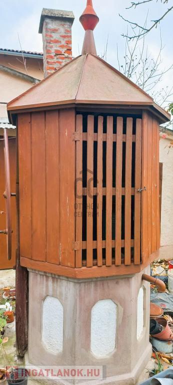 A gondozott, fűvel borított kertben a dísznövények és virágok teremtenek kellemes, otthonos hangulatot, melyek öntözése kerekeskúttal biztosítható. A tágas kert tökéletes helyszín reggeli kávézáshoz, pihenéshez vagy baráti beszélgetésekhez a természet közelségében. A távolban elterülő dombok lenyűgöző látványt nyújtanak. Az ingatlan ideális választás mindazok számára, akik Időtlen, retro bájjal rendelkező kuckót, avagy merész ötletekkel egy modern családi fészket kívánnak megvalósítani.
