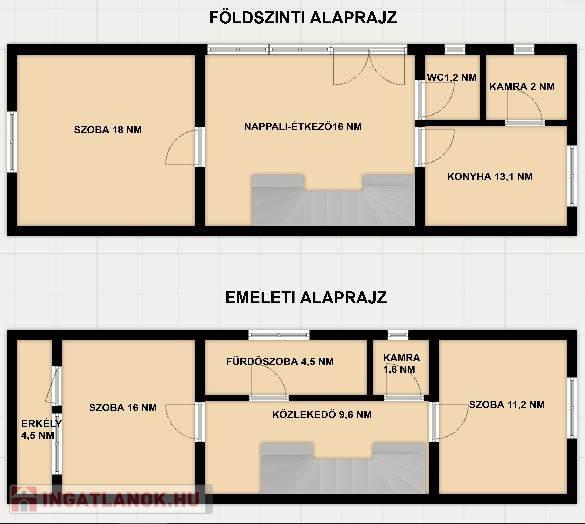 - 92 nm-es 2 szintes, tégla építésű IKERHÁZ