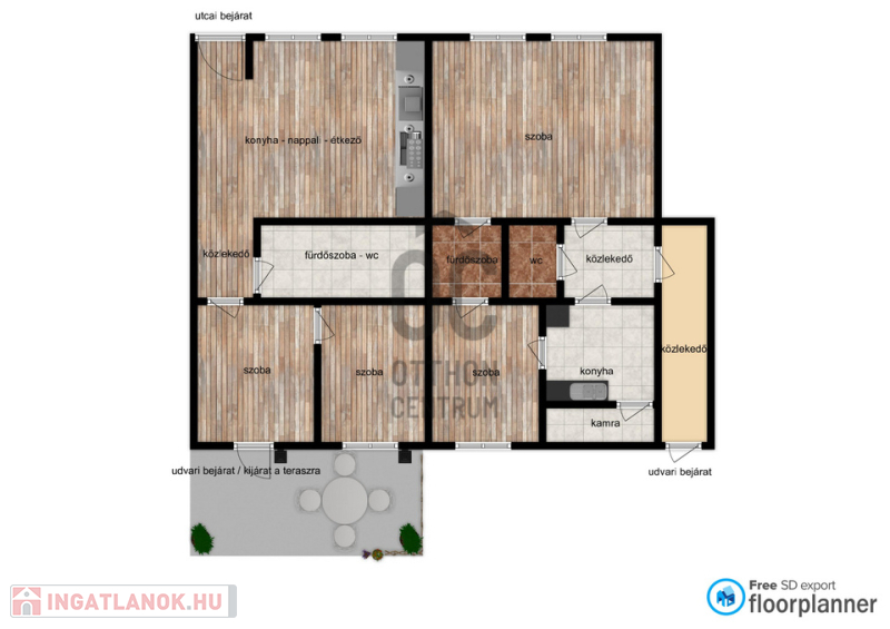 Az ingatlan kertkapcsolatos, kettő garázs tartozik hozzá az udvaron belüli megközelíthetőséggel!