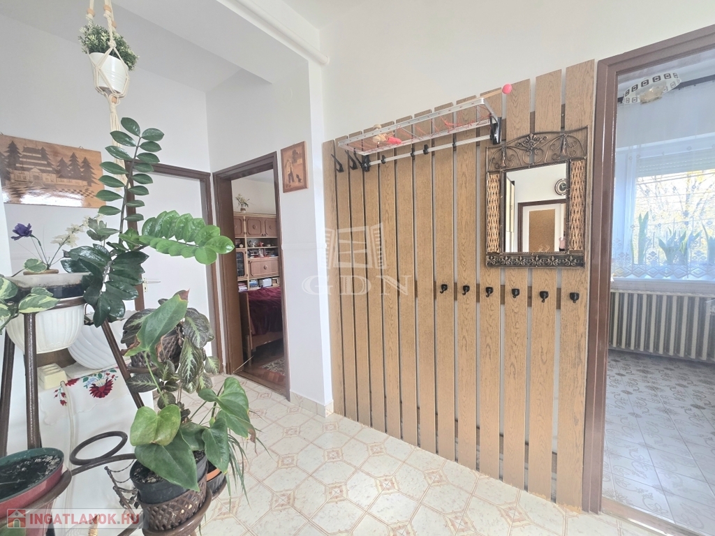 A ház egyszintes, jól átgondolt elrendezésű, három szobával, tágas nappalival, hangulatos kertkapcsolattal, 1485 m²-es, gondosan kialakított udvarral, ahol minden részletre figyeltek – gondozásmentes kerítés, esztétikus zöldfelület, gyümölcsfák,kiskert, pince, garázs, műhely, melléképületek.