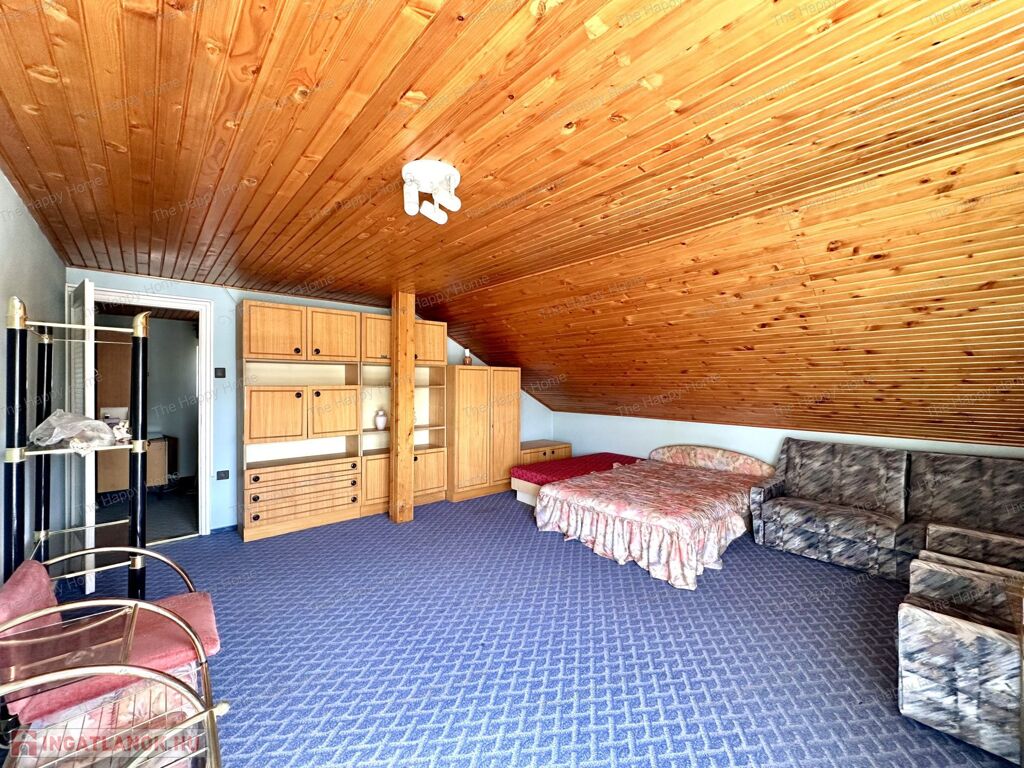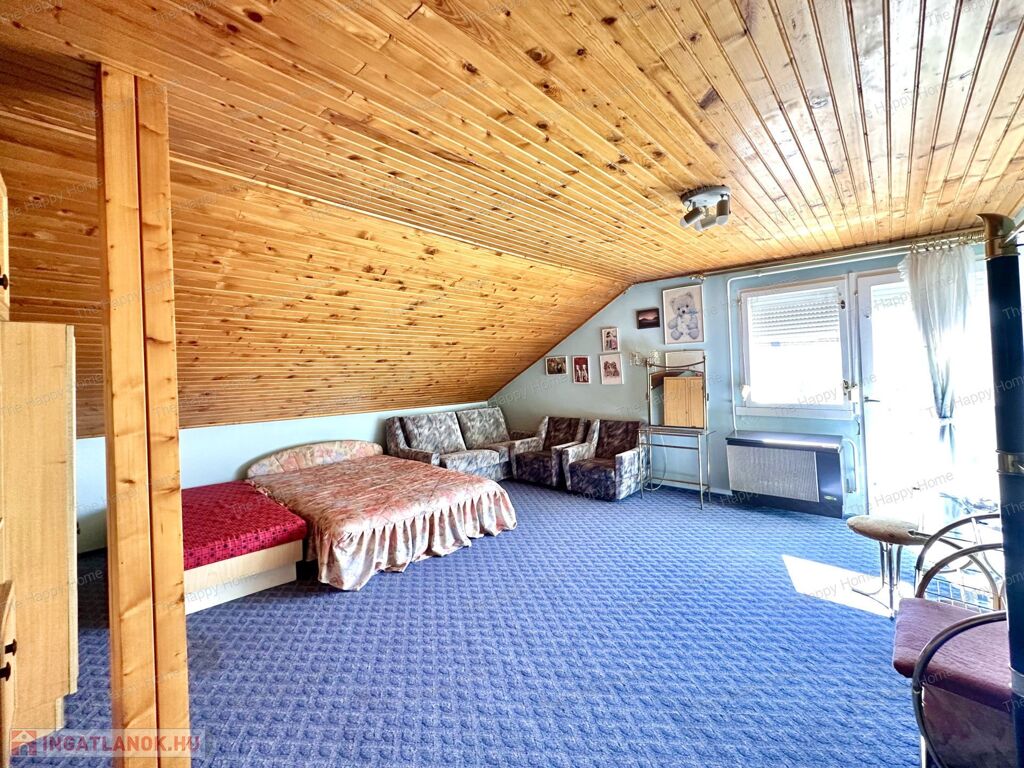 - tágas központi helyiség, ahonnan egy hangulatos fa lépcsőn a tetőtérbe jutunk