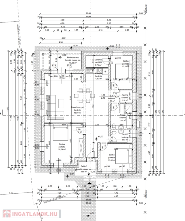 - A ház kizárólag téglából, 16 cm hőszigeteléssel épül, cserép héjazattal