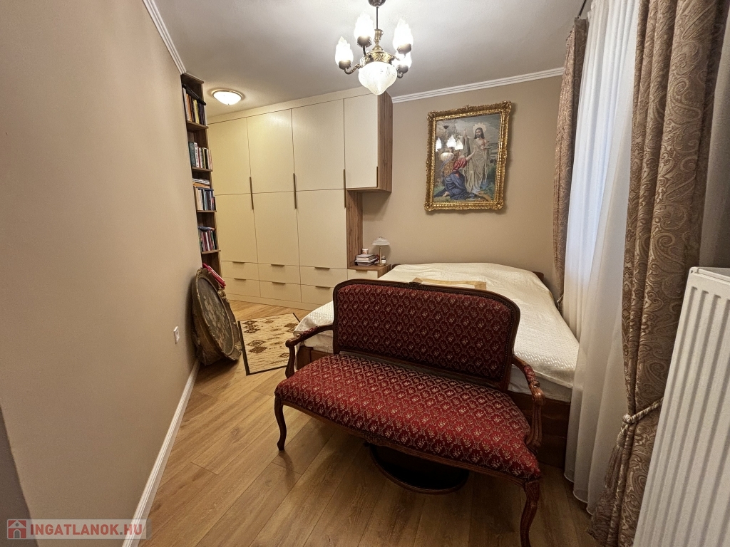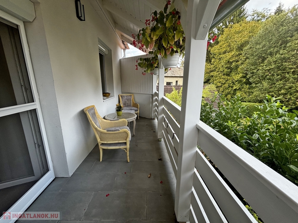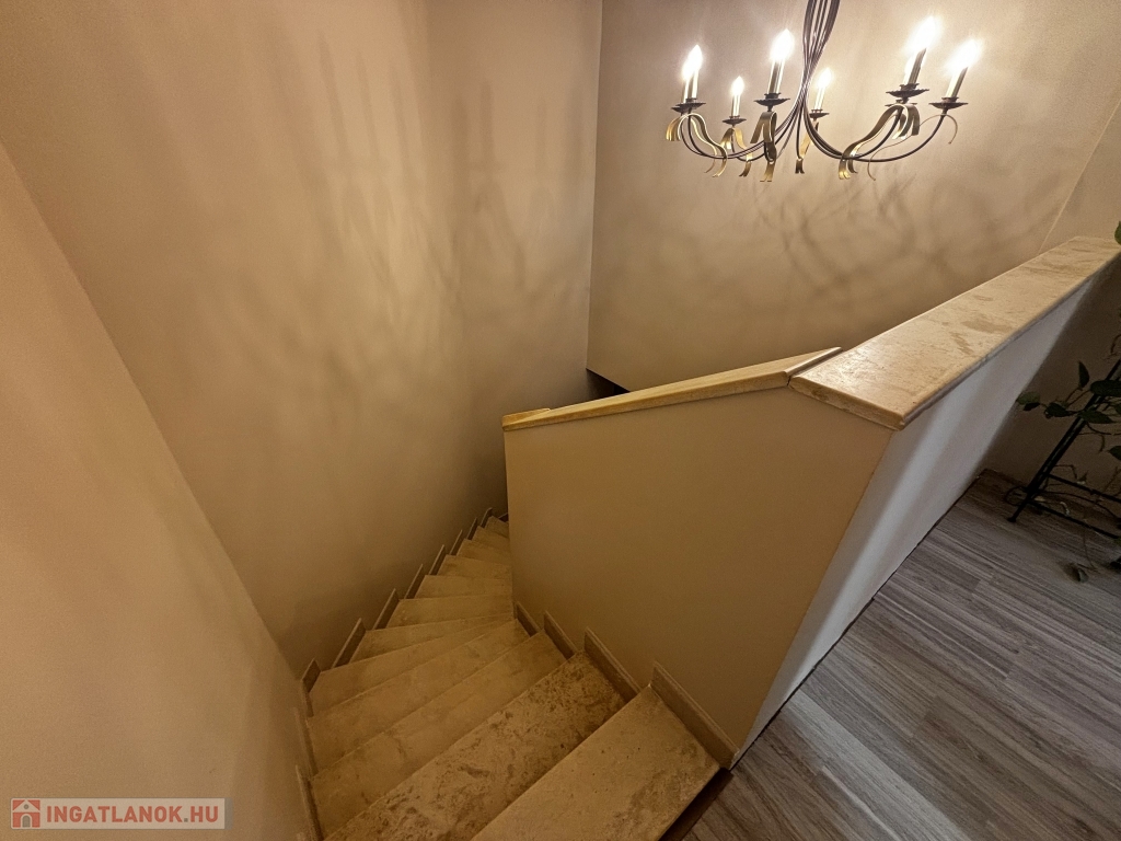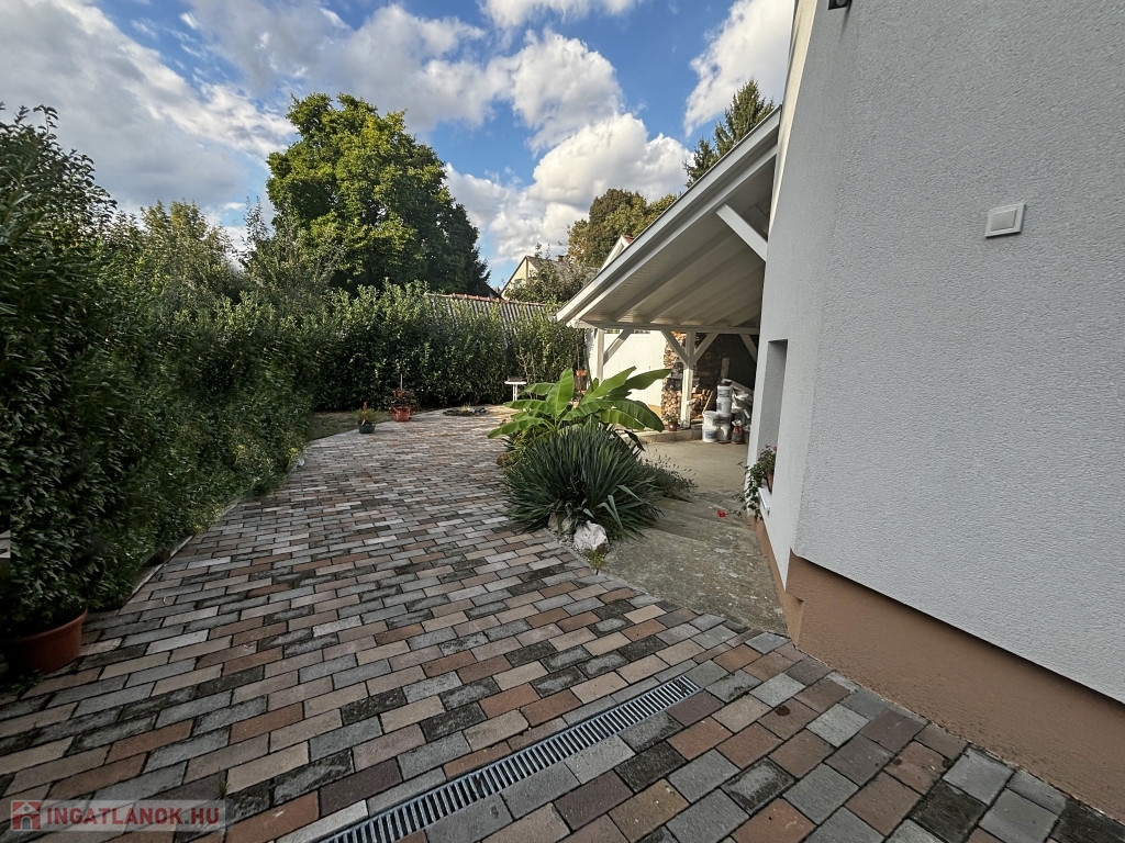 A szuterén külön bejárattal rendelkezik, akár vendégek fogadására, vagy apartman lakásként való üzemeltetésre is alkalmas. A felső és alsó szinthez is tartozik erkély, valamint a ház mögött, egy fedett terasz is rendelkezésre áll. A garázsba akár két autóval is könnyedén parkolhat, valamint a ház mellett fedett beálló, a ház előtt pedig térköves beálló fogadja a hazatérőket. A kert parkosított, érdekes virágok és szőlőlugas díszítik az udvart. Az elektromos kapu távirányítóval nyílik. A biztonságról riasztó és kamerarendszer gondoskodik.