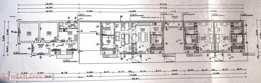 - A külön bejáratú családi ház 65 m2-es, az apartmanok területe pedig egyenként 37 m2, amelyekből négy épült.