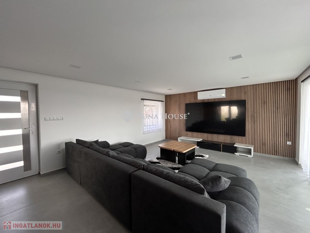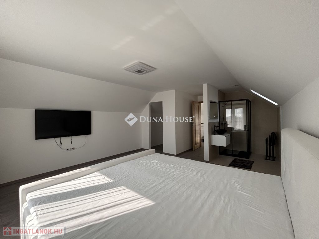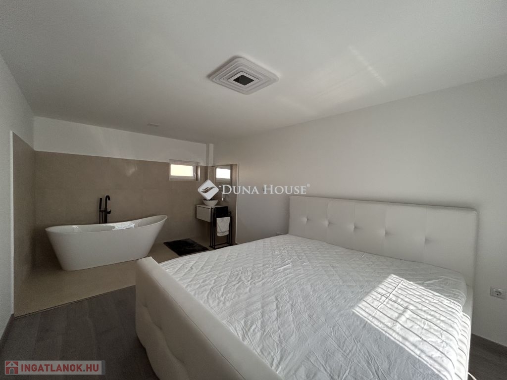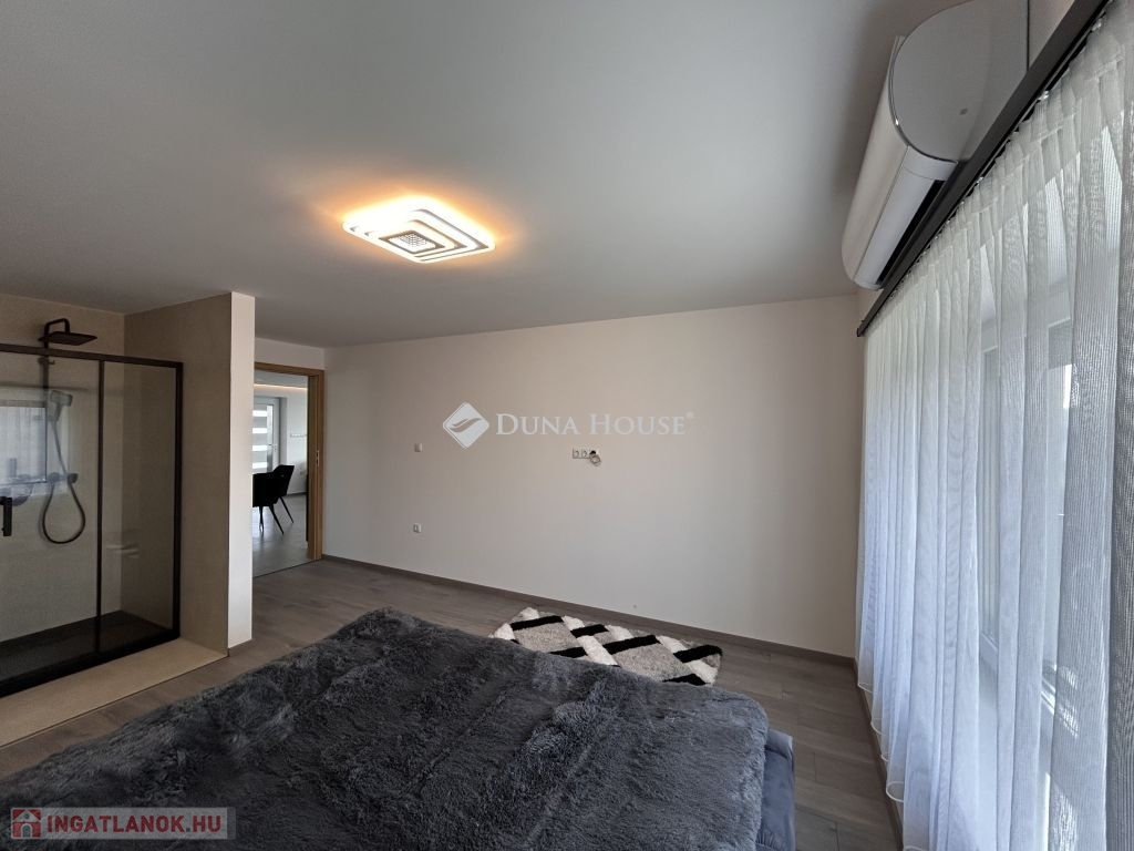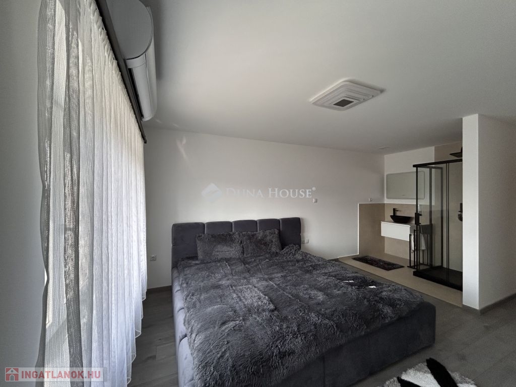 Prémium minőség nettó 267 nm-en!Családi házat kínálok megvételre Zalaszentgrót egyik csendes zsákutcájában. Az elvehetetlen panorámával rendelkező kettő szintes családi ház nappali+5 háloszobás, különlegessége a tökéletesen kialakított teraszán kívül, hogy minden szobához fürdőszoba tartozik, ezzel biztosítva, hogy egy nagyobb, több tagú család is kényelmesen el tudjon különülni egymástól, akár egy reggeli készülődés során, vagy egy fárasztó nap után, amikor mindenki privát szférára vágyik. Közösségi tere tágas, konyhai berendezése magas minőségű bútort és gépezetet kapott, ez is ugyanúgy mint a ház többi része még érintetlen, vadonatúj, a ház első lakóit várja!Elrendezése praktikus, a földszinten nappali+konyha+étkező, kettő hálószoba, az emeleten pedig további három hálószoba van. A 3521 nm-es telket a házból tudjuk megközelíteni, a konyha mellett elhelyezkedő terasz ajtón át. Műszaki tartalma értéket képvisel, mai kornak abszolút megfelelő, hiszen ez egy téglából épült cserépfedésű tetővel ellátott szigetelt ház, három rétegű nyílászárókkal, elektromos redőnnyel. Villamos hálózata 3X25 A, ezzel működtetve a hét beltéri egységet magába foglaló klímás hűtő- és fűtő rendszert, éjszakai árammal kiegészítve a maximális energiatakarékosság jegyében. Dupla garázs kívülről elérhető, ennek szerkezete panelből készült. Az udvarról elérhető egy külön helyiség, ahol a ház teljes gépészeti rendszere van, ezen felül egy élhető méretű helyiség akár családi összejövetelek, akár bármilyen más jellegű tevékenységnek helyéül szolgálhat. Nagyon ritka olyan ingatlant találni manapság, ami azonnal költözhető, gyönyörű, igényesen kivitelezett állapotú, csendes helyen levő, ám Zalaszentgrót központja percek alatt elérhető autóval. Befektetői szempontból is érdemes megvizsgálni a ház adottságait, hiszen apartmanként is minden igényt kielégítő, könnyen megtérülő hasznot generálhat tulajdonosának. Jogtiszta ingatlan, a vételár megfizetése után szinte azonnal birtokba vehető!Megtekintéshez az alábbi elérhetőségek valamelyikén tud velem időpontot egyeztetni. Várom megtisztelő hívását, akár hétvégén is!
