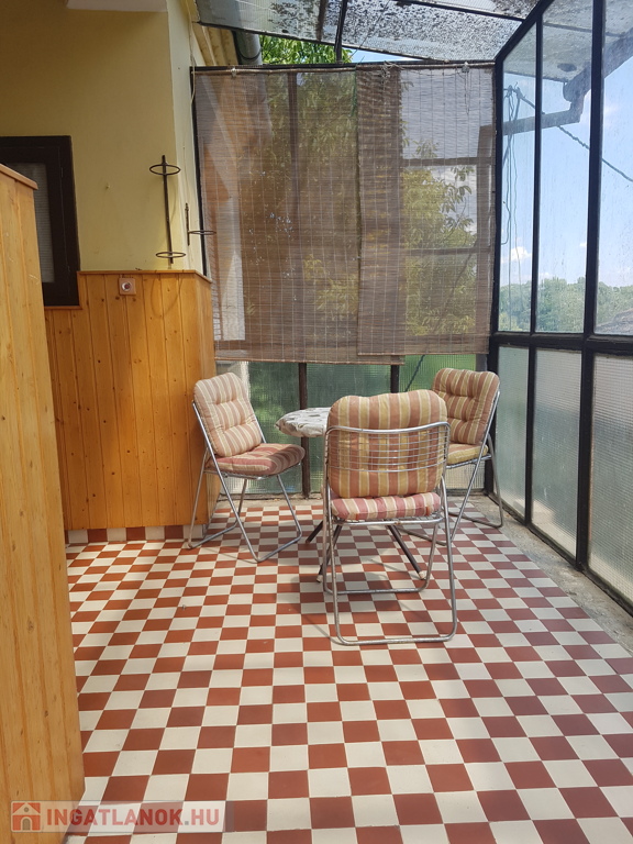 A házban 3 szoba, nagy konyha ,fürdő-WC egyben (zuhanyzó, kád és a gázkazán), meleg víz ellátás villanybojlerből ami kb.5 éves, kamra (ahol a padlásfeljáró is van), előszoba, nagy terasz van kialakítva.