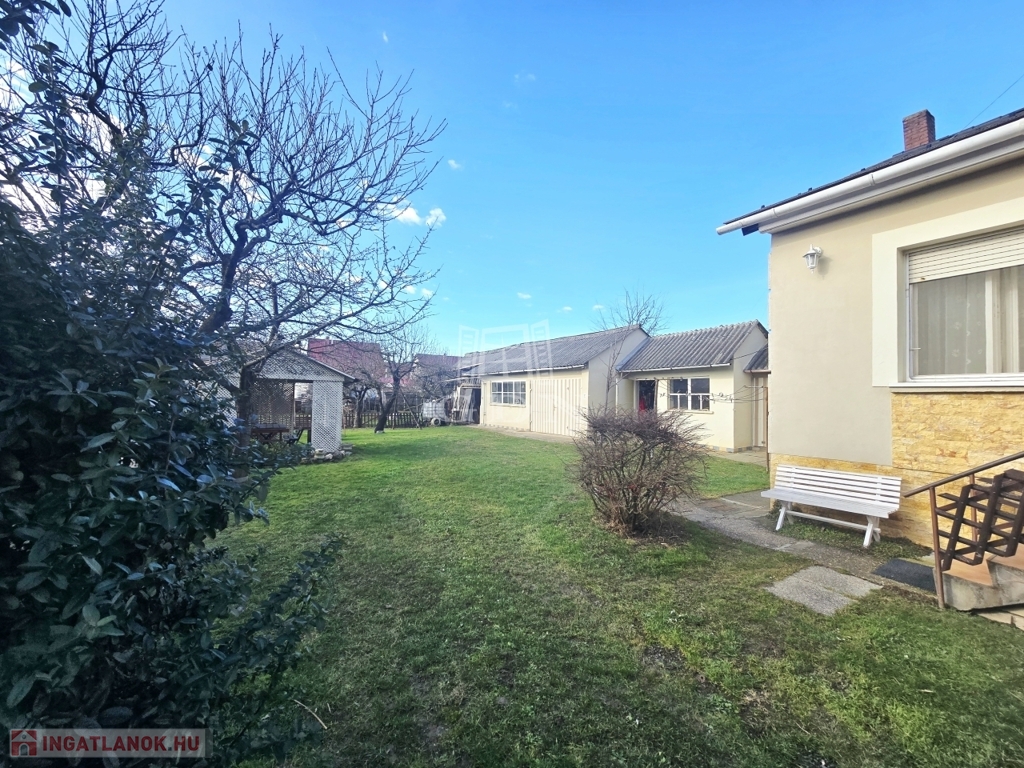 A kertben számos díszbokor és termő gyümölcsfa található, többek között körte, alma, dió, a kerti kiülő pedig lehetővé teszi a kellemes együttlétet a család számára. A gondozott, körbekerített udvar biztonságos teret biztosít gyermekeknek és háziállatoknak egyaránt.