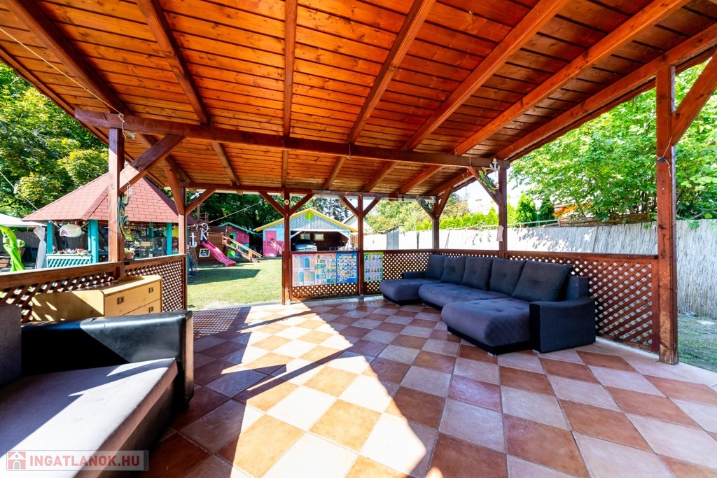 Zamárdi üdülőtelepén, 5 perc sétára a strandtól, a Vécsey Károly utcában eladó egy 2003-ban épült, nettó 200 m2-es, lakóházként használt 3 szintes családi ház. Az összközműves, üdülőövezeti telek területe 1170 m2, melynek beépíthetősége 20 %, ahol fedett kocsibeálló, játszótér, kerti szerszámos, plusz egy 35 m2-es nyaralóépület is helyet kapott.
