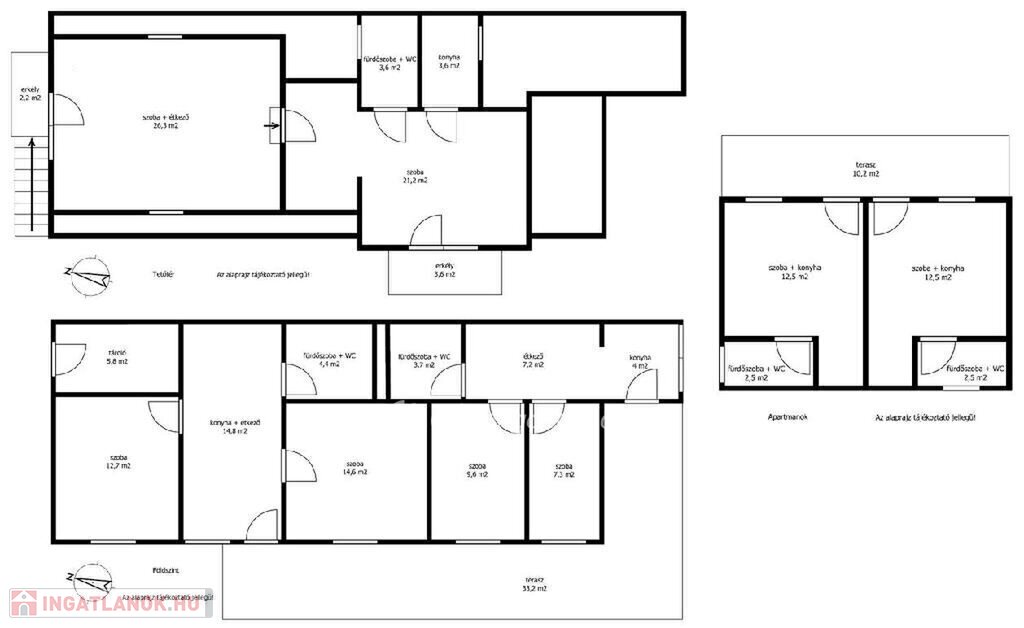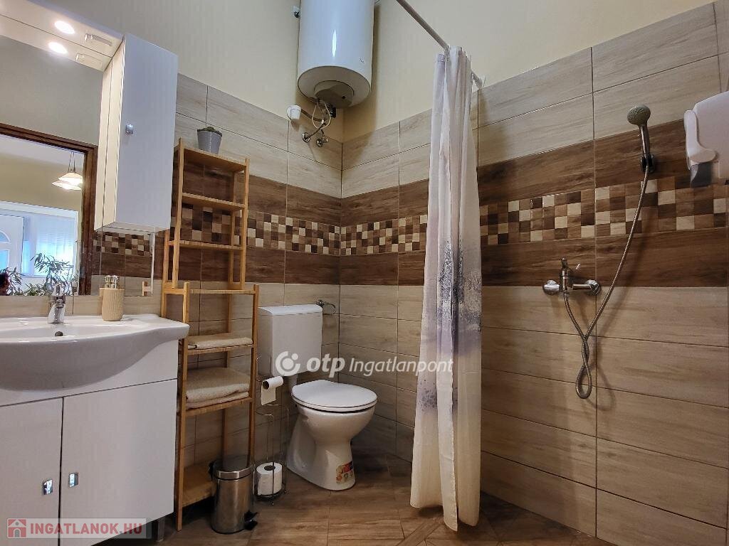 Balaton déli part, Zamárdi, vízpart közeli 193 m2 családi ház és apartman, 530 m2 telek eladó. Az ingatlan a közkedvelt település üdülőövezetében helyezkedik el, 300 méterre, gyalog 4 percre a Balaton-parttól, szabadstrandtól. Az évek óta jól működő apartmanház működtetése már erre a szezonra is átvehető, de kisebb átalakítással tökéletes családi házzá alakítható állandó lakhatásra vagy nyaralásra. Jelenlegi állapotában az egy, illetve kétszobás apartmanok összesen 20 fő befogadására alkalmasak. Az összesen 169 m2 lakóteret 49 m2 terasz és erkély növeli. Az áramellátást napelem biztosítja, így a havi rezsiköltség csak 8 ezer Ft. Az egyes lakrészek különböző komfortfokozattal rendelkeznek, van köztük gázkonvektorral fűtött és klimatizált is. A zárt, térköves udvaron 5 autó elhelyezésére van lehetőség, a füves udvarrész pedig tökéletes hely a pihenésre, családi és baráti összejövetelekre, a gyerekeknek játszótérre. Az ingatlan azonnal használatba vehető, nagycsaládoknak, több generációs családoknak, baráti társaságoknak, vagy befektetési céllal részben vagy egészben kiadásra, nyaraltatásra, üzleti vállalkozásra is kiválóan alkalmas. A szabadstrand mellett kikötő, éttermek, bolt, fagyizó, vasútállomás párszáz méteren belül elérhető, állandó lakhatáshoz pedig óvoda és iskola is biztosított. Ritka, egyedi lehetőség sokféle elképzelés, terv megvalósítására. Bővebb információért keressen telefonon! M326765