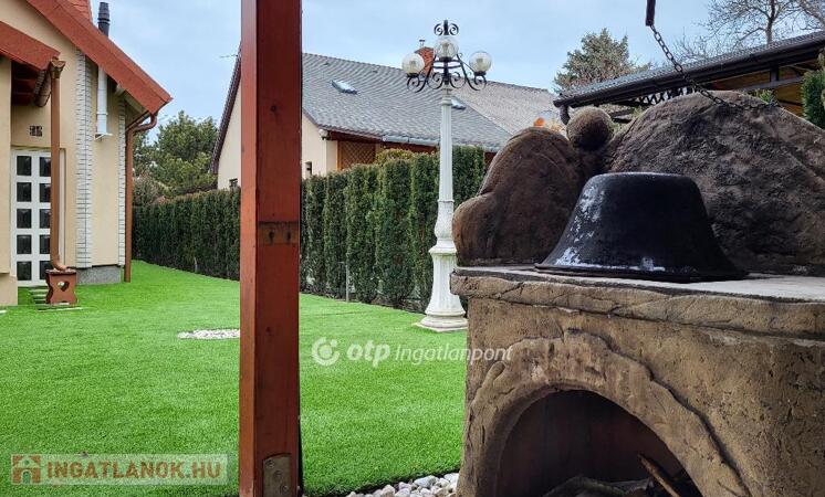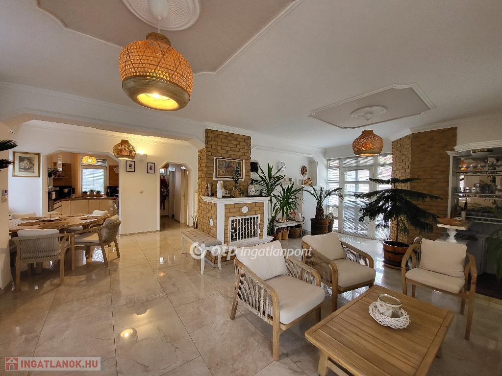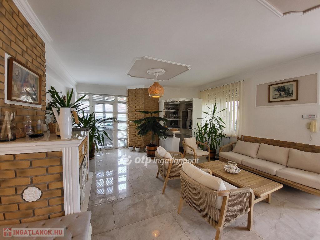 Balaton déli parton, Zamárdiban, 210 m2-es családi ház, 701 m2-es telken eladó. Az ingatlan a település üdülőövezetében, csendes, nyugodt környezetben helyezkedik el, gyalog 2 percre a Balaton-parttól, a kiépített szabadstrandtól. A két szintes, 151 m2-es házban a hatalmas nappalin kívül 4 hálószoba került kialakításra. Az átgondolt, jó elosztású lakótérben 3 fürdőszoba áll rendelkezésre, így ideális lehetőség akár többgenerációs családoknak is. A fűtést gáz cirko kazán biztosítja radiátor hőleadókkal, amit a földszinten padlófűtés és egy kandalló egészít ki, továbbá beépítésre került egy 5 egységes, inverteres hűtő-fűtő klíma berendezés is. Az ingatlan értékét növeli a földszinten külön bejárattal kialakításra került önálló, 21 m2-es apartman, 50 m2-es terasz, egy fedett, fűthető medence gyerekmedencével, 13 m2-es nyári konyha, téli kert, fedett pavilon kültéri kemencével, épített bográcsozóhely, műfüves kert, 4 autó számára térkövezett gépkocsi beálló. Az ingatlan jelentős része 2 éve felújításra került. Az ingatlan kiváló lehetőség nagycsaládoknak, több generációs családoknak állandó lakhatásra vagy nyaralásra, de baráti társaságoknak, vagy befektetési céllal részben vagy egészben kiadásra, nyaraltatásra, üzleti vállalkozásra is tökéletes megoldás. Kiváló minőség, egyedülálló lehetőség extrákkal! A nyári szezonban bérelhető is! Bővebb információért keressen telefonon!