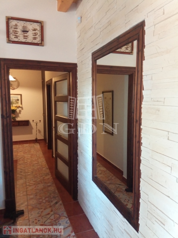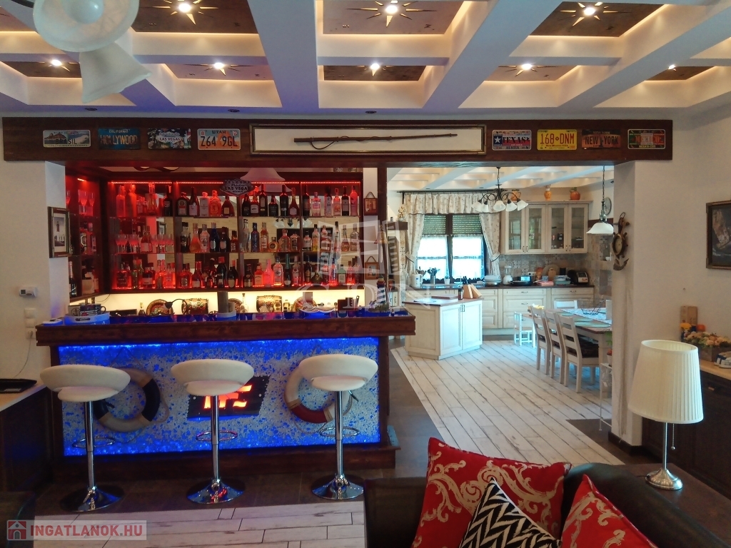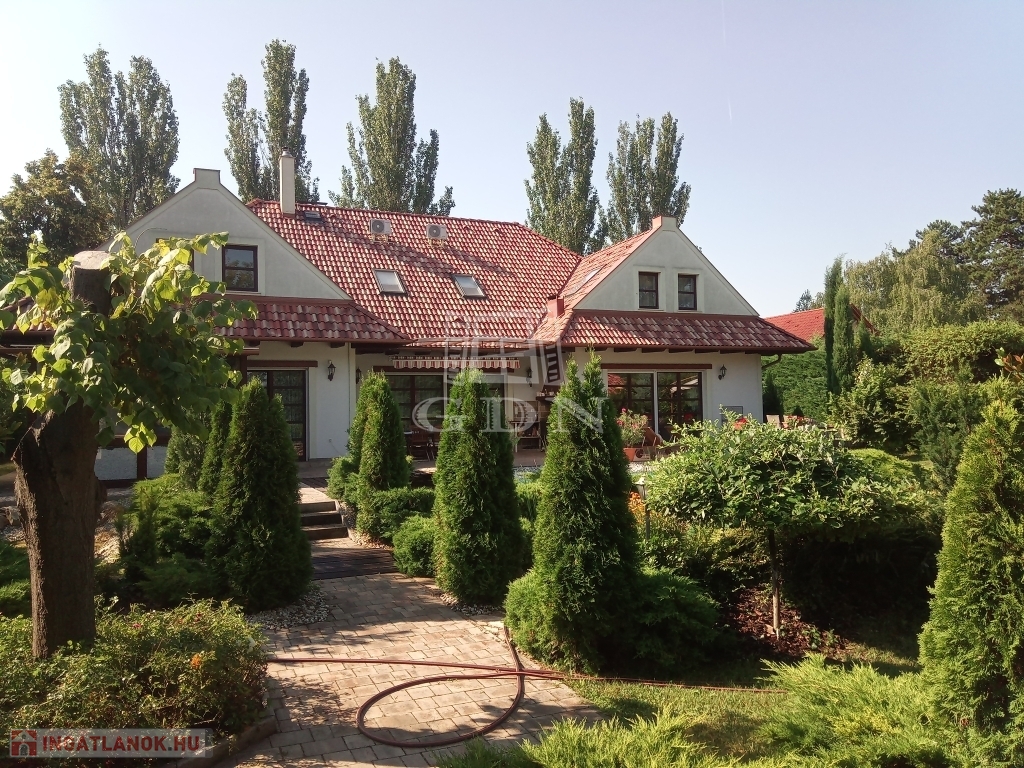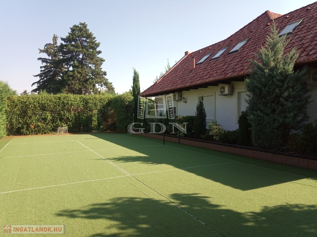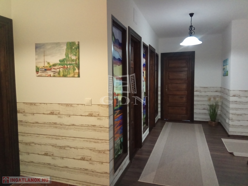 Zamárdi keresett részén, a víztől ötszáz méterre, kényelmesen megközelíthető helyen eladó ez a luxus, számos célra hasznosítható, jelenleg LAKÓHÁZ minősítésű ingatlan. A ház 2017-ben épült minőségi anyagok felhasználásával. Egy gyönyörű parkosított kert öleli, amelyben kerti beálló, pihenő, fedett grillező, egy hatalmas műfüves sportpálya, kis játszótér és egy úszómedence is található. Itt kapott még helyet egy 24 nm területű kerti tároló is, amely akár plusz nyaralóként is funkcionálhat. A ház vízellátását a vezetékes vizen kívül két kút is segíti. A ház kiválóan alkalmas mind állandó lakásra mind üzleti célra. A földszinten egy belépőből nyílik a hatalmas mosókonyhával és beépített bútorzattal ellátott nagy területű garázs. A belépő-közlekedő helyiségből juthatunk fel a ház emeletére, de innen nyílik a tágas és kertkapcsolatos nappali is amelyben helyet kapott egy hangulatos bár is. Ugyancsak a nappaliból nyílik egy kertkapcsolatos hálószoba saját kádas-zuhanyzós fürdővel és vécével, valamint innen nyílik két gardrobe is, továbbá innen juthatunk még egy plusz ugyancsak kertkapcsolatos helyiségbe, amelyben egy télen is használható jacuzzi várja a pihenni vágyókat. A nappali mellett kapott helyet egy tágas konyha étkezővel. Ez is közvetlen kertkapcsolattal bír. A földszinten található még három külön hálószoba saját tusolós fürdővel vécével. A ház emeletén található hat hálószoba, ebből 4 egymásba is nyitható. Itt két hálónak saját fürdőszobája van és van még két külön tusolós fürdő is wc-vel. Itt került kialakításra egy óriási egy légterű hobbi szoba is, amely akár további hálószobákká alakítható. Az épület teljesen légkondicionált. Fűtése alapvetően gázkazánról történik, de lehetőség van a klímákkal vagy kandallóval való fűtésre is. A használati melegvíz ellátást gáz és villany is biztosítja. Az ingatlan beépített bútorzattal (igény szerint teljes bútorzattal) eladó.