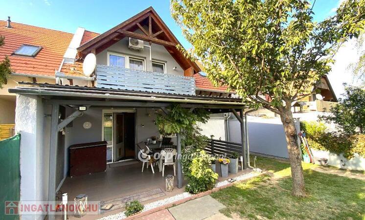 A Balaton déli partján, Zamárdiban 136 m2-es 4 hálószobás ház eladó. A város zöldövezeti részén, 444 m2-en telken fekvő kétszintes ház földszinti helyiségei: amerikai konyhás nappali, fedett terasz, háló, fürdő, wc. Az emeleten 3 háló, fürdőszoba, wc és egy jelenleg tároló/gardrób szobaként funkcionáló helyiség, amiből igény esetén még egy szoba kialakítható. A 25 m2-es fedett autóbeálló beépítésére is van lehetőség. Az emeleten egy szoba erkélyre nyílik, a földszinten az amerikai konyhás nappali pedig terasz kapcsolatos. A szomszédos egységeket dupla 38 cm-es Porotherm tégla választja el, a két egység között légréssel, így az ingatlan teljesen szeparált. A ház 2005-ben épült, azóta többszöri felújításon esett át, kívül-belül jó állapotú. Automata kapunyitás és riasztó vezetékes előkészítése megtörtént. Fűtéséről cirkó gázkazán gondoskodik, radiátoros hőleadással, az emeleten hűtő-fűtő klíma biztosítja a kellemes hőmérsékletet. A lakótér alapterülete 109 m2, a terasz, erkély, autóbeálló 50%-kal került beszámításra.