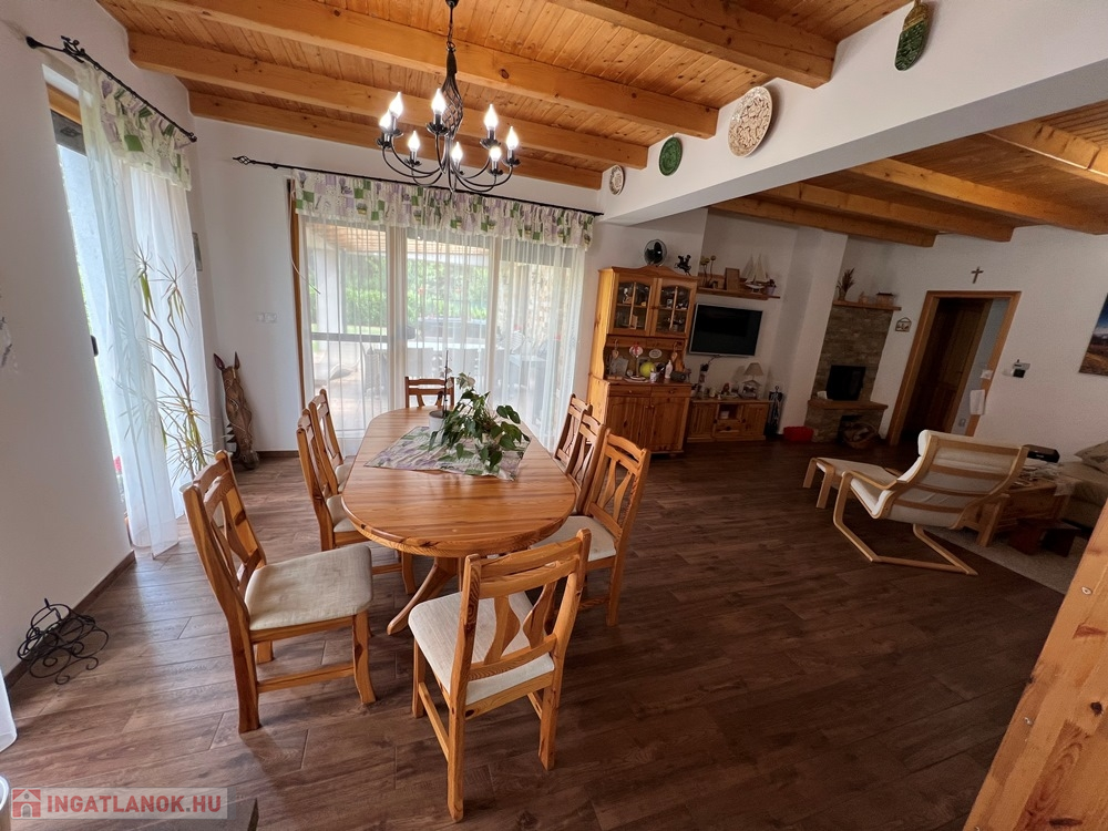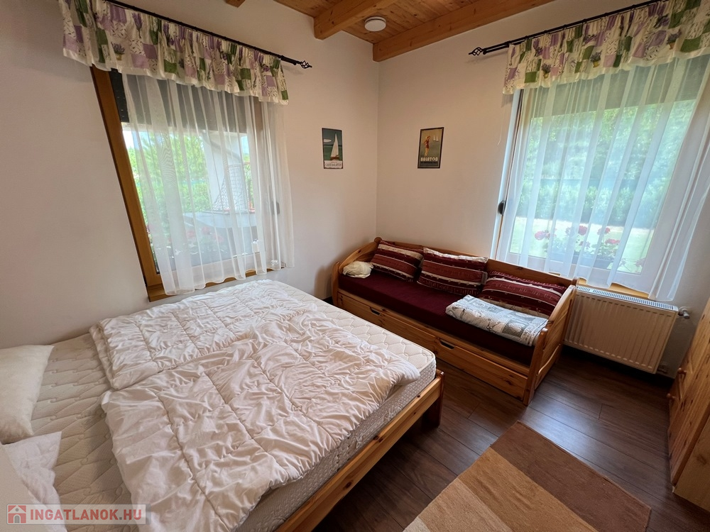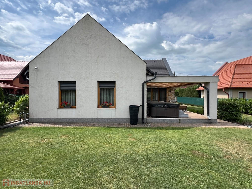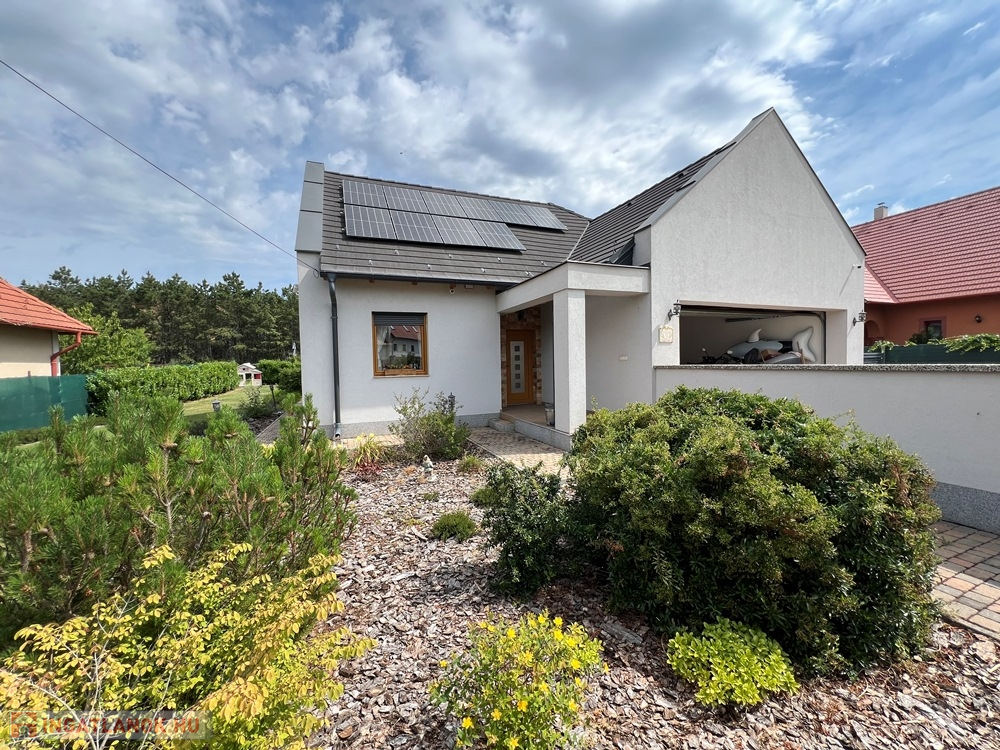 Zánka rendkívül kedvelt, csendes részén, szinte átmenő forgalommentes utcában, újszerű családi házak környezetében, BALATON partjától, strandtól pár perces sétatávolságra, 720 m2-es, összközműves, 22 m széles utcafrontú parkosított telken lévő amerikai konyha - étkező – nappali + 3 hálószobás, továbbá kamrával, háztartási helyiséggel, szauna helyiséggel is felszerelt, KLIMATIZÁLT, 111 m2 hasznos alapterületű, kiváló állapotú családi ház, 34 m2-es DUPLAGARÁZZSAL, 34 m2-es TERASSZAL, NAPELEM rendszerrel eladó.