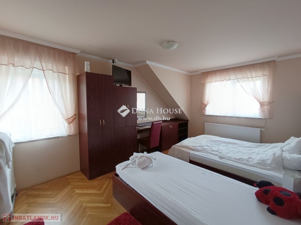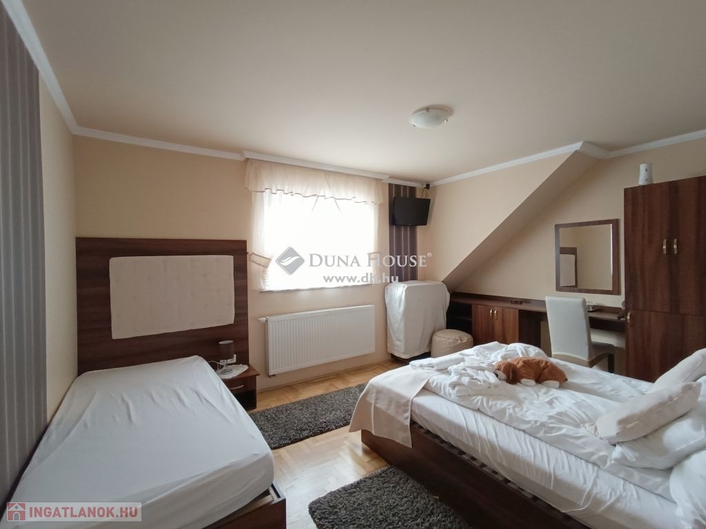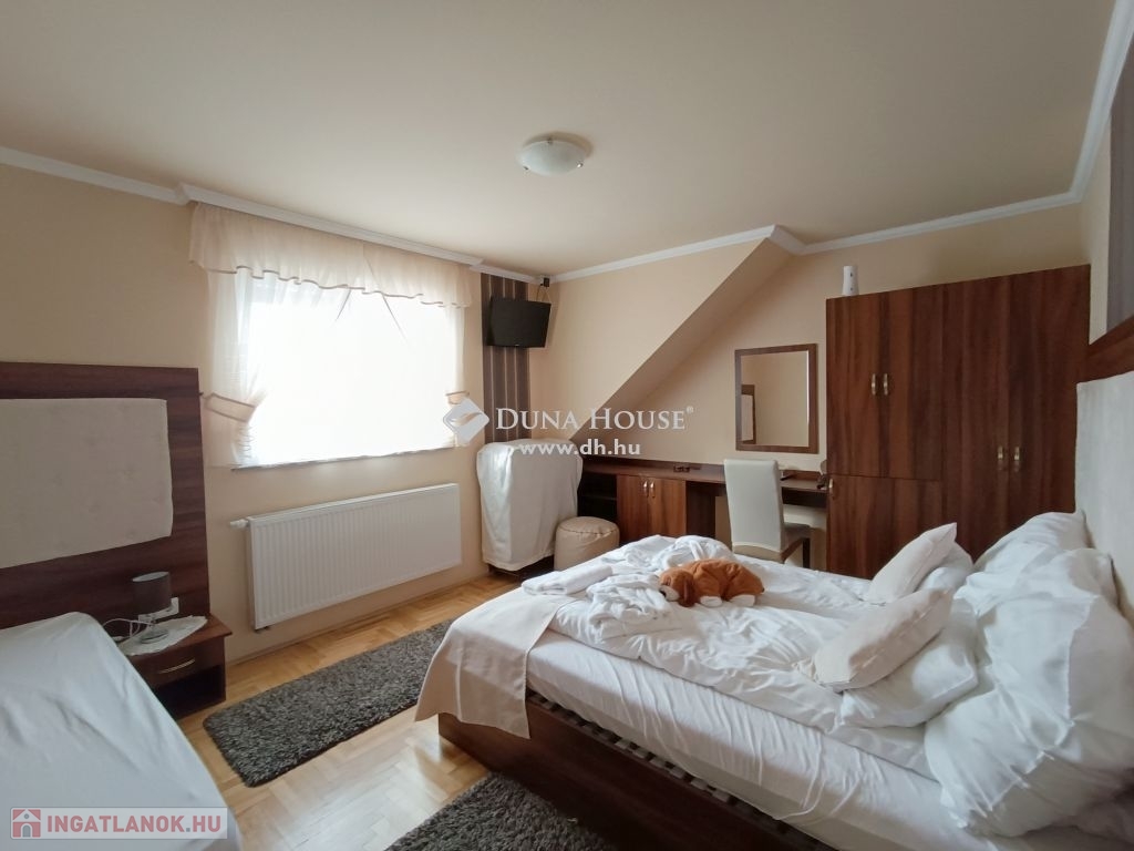 A tágas udvar le van térkövezve vendégparkolóként is működik. Az udvaron egy nagy melléképület van amiben helyezkedik el a kazánház, egy tároló és egy két beállású szerelőaknával ellátott garázs is.Az alsó rész a hatvanas években épült kőből és téglából vegyesen. Az emelt földszint 1980-ban épült téglából vasbeton koszorúval, födémmel. A tetőtér lakótérré történő átalakítása 2004-2005 között történt akkor cserélték le az ajtókat ablakokat hőszigetelt redőnyös műanyagra, új burkolatokat kaptak a helyiségek, festettek. A tetőtér vendégháza alakítása 2014-ben történt, amikor az épület 2x5cm külső szigetelést és homlokzati festést kapott. 2024-ben a fűtést a gázkazán mellet kiegészítették hőszivattyúval is, de egy új Carborobot kazán is be lett állítva, ha a szükség megkívánja.A vendéglátás és a fodrászat, kozmetika, pedikűr-manikűr, masszázs, szolárium folyamatosan működik, bejáratott ügyfélkörrel. Szükség szerint könnyen átalakítható csak vendéglátásra, vagy munkásszállásnak. Mivel nem a központban van és nem turisztikailag kiemelt helyen, kedvezményes elbírálásban esik a turisztikai adó szempontjából.Fiatal családnak vállalkozás indítására is kiválóan alkalmas. Turisztikai szempontból kiváló helyen van, mert a Magas Bakony kiváló természeti értékei iránt érdeklődők könnyen megközelíthetnek olyan látványosságokat amelyek Borzavár, Porva, Szépalma puszta, Kőrishegy, Hódosér, stb. körzetében vannak.