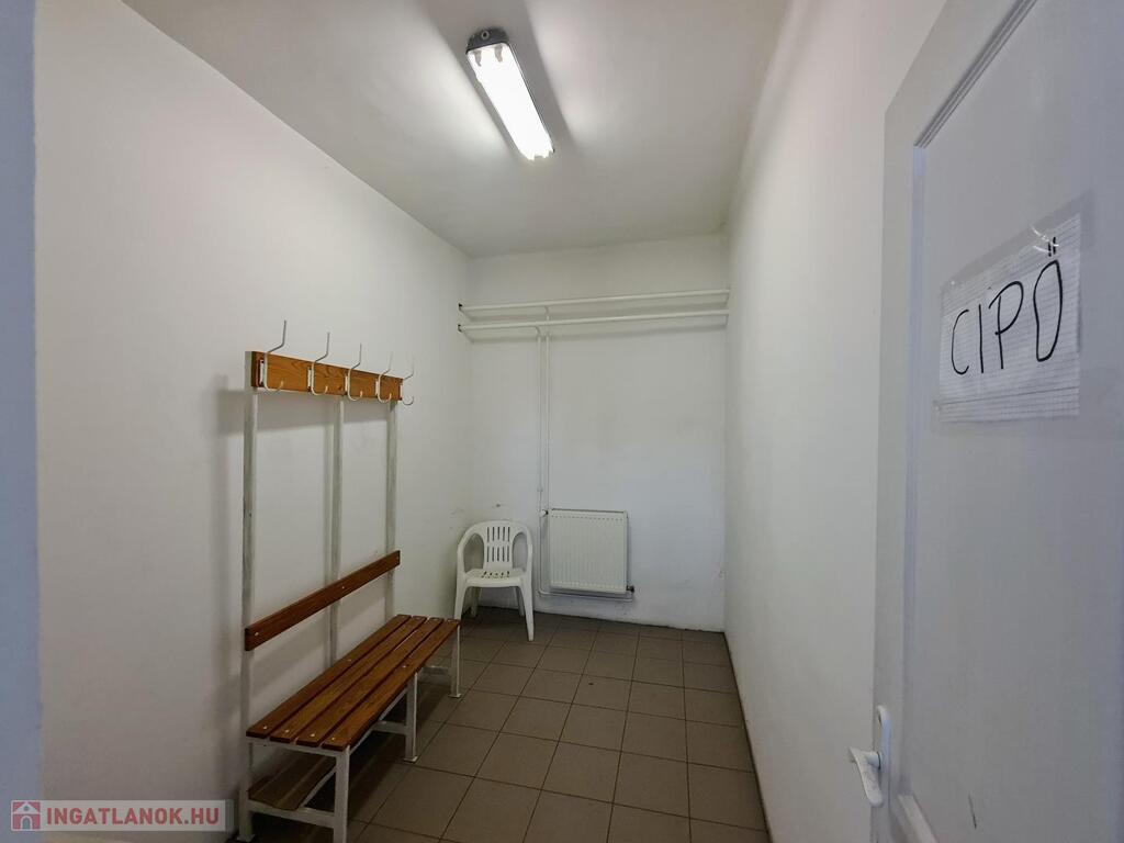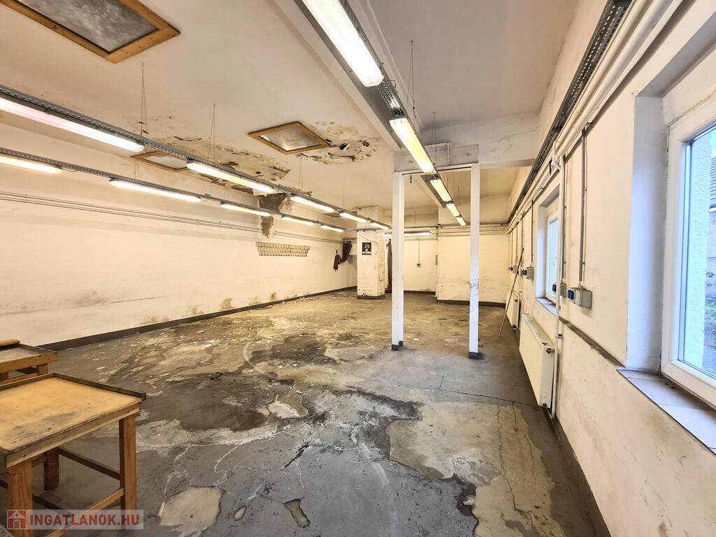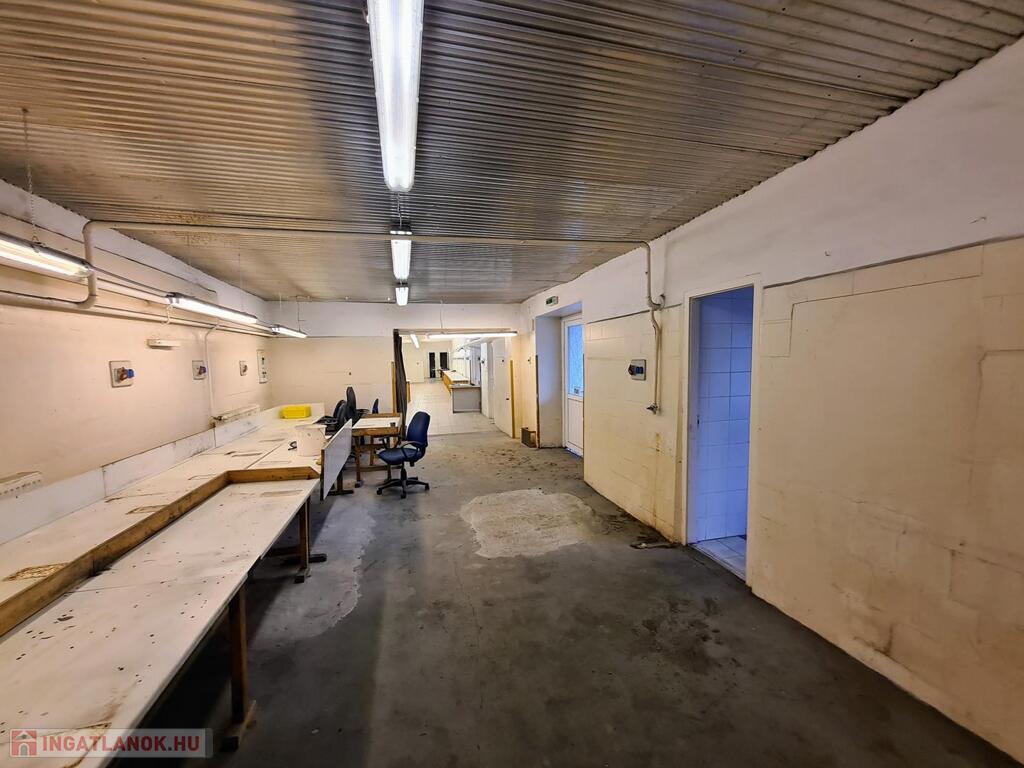 - előtér, közlekedő, üzlethelyiség, 3 műhely, raktár, tároló, öltözők, fürdők, WC-k, kazánház, pince (45 nm)
