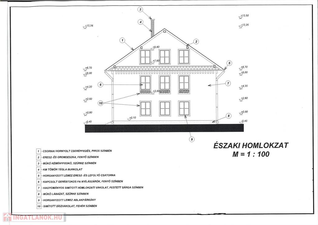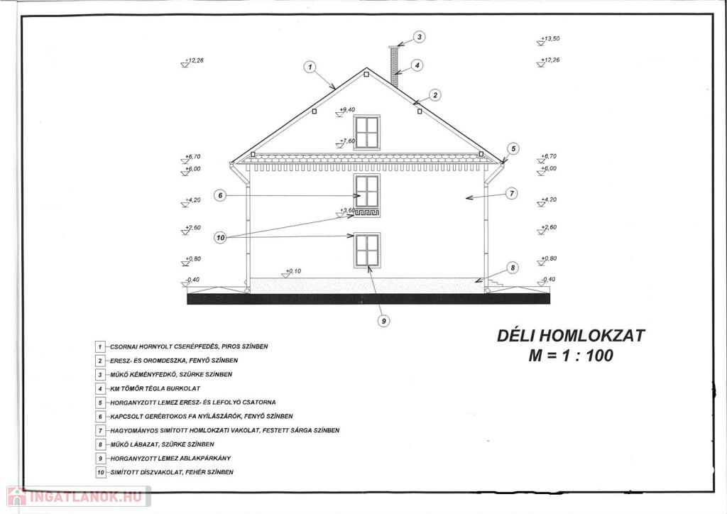 Födémszerkezet. 15 cm vtg. téglabetétes vb. horcsikfödém, 22 cm magas „G” jelű vb. gerendák között, salakfeltöltéssel.