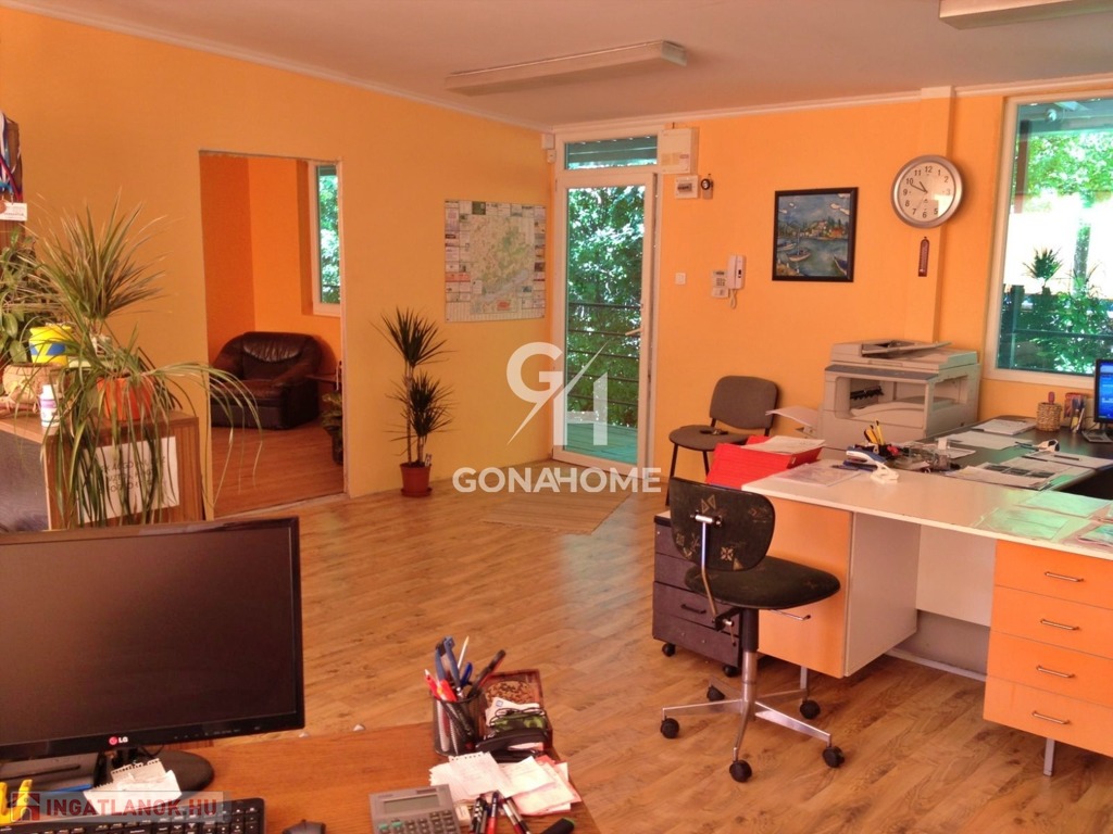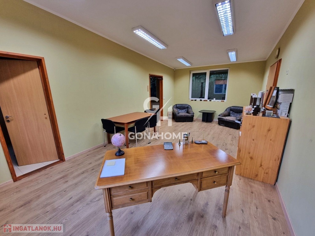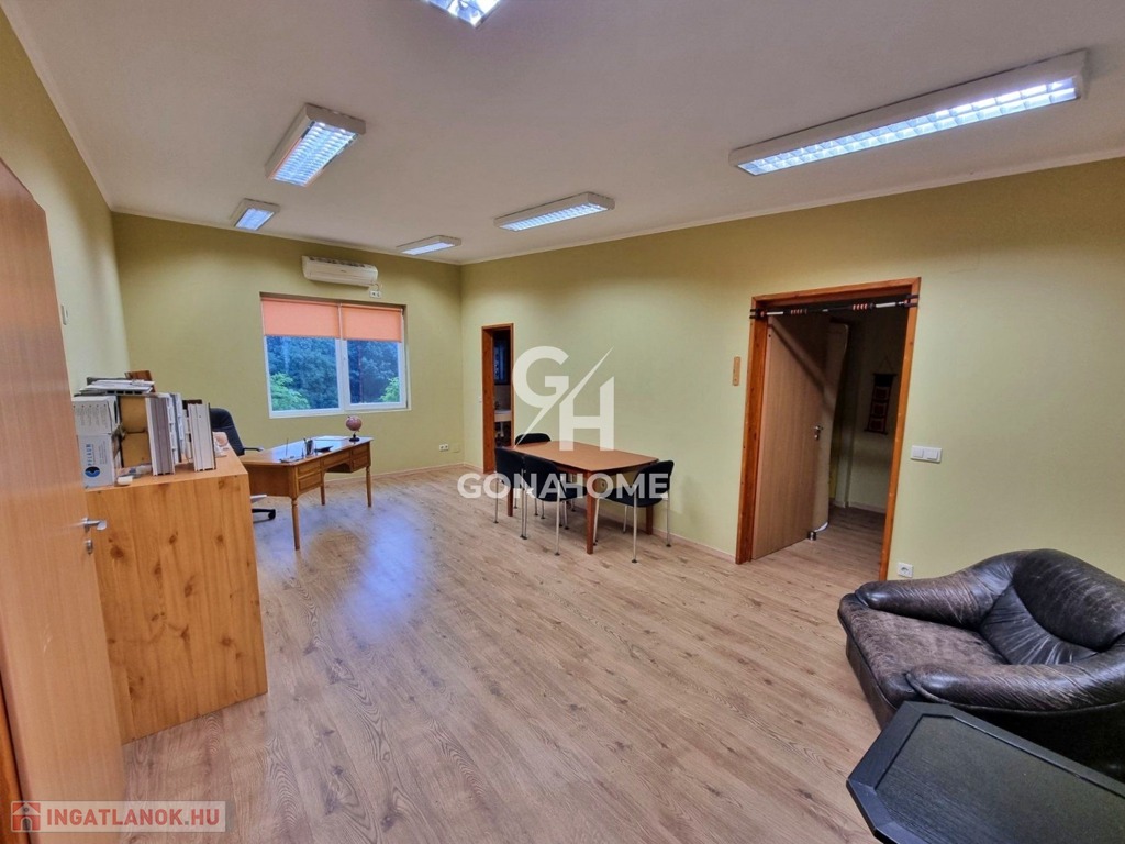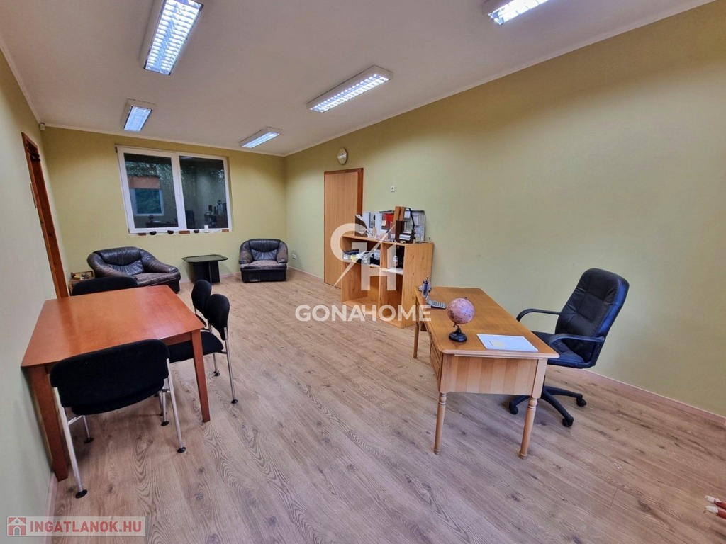 - Az iroda ÚJ ÉPÍTÉSŰ szendvicspanel és 150 m2. Itt találhatók irodák, tárgyaló, fürdő-WC, teakonyha. A bejáraton hangulatos erdei környezetű fedett terasz került kialakításra