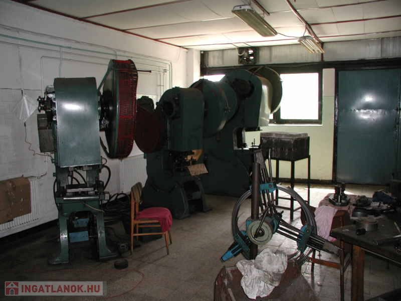 2200 nm lekerített saját telek + közös területek . A fő épület 2 szintes beton elemekből készült, 6 m belmagasság (daruzható), össz. 580 nm +