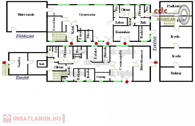 RÁKOSCSABÁN ÉLELMISZERGYÁRTÁSRA ALKALMAS IPARI INGATLAN ELADÓ! XVII. kerületben kínálom megvételre ezt a 926 m2-es telken lévő, 3 szintes, 620 m2-es, jól megközelíthető, 2000-ben épült, de 2015-ben felújított ipari ingatlant. A földszint 300 m2-es, a gyártás és az alapanyagok tárolása és az értékesítés történik. Innen a termékek, zárt rendszerben, teherlifttel az első szintre kerülnek, ahol a további folyamatok és a csomagolás történik. Erről a szintről két teherliften lehet a kész termékeket a szállító járművekre juttatni. Mind a két szinten van hűtőkamra. A második szinten tágas klimatizált iroda van. Az első szinten található egy külön bejárattal rendelkező, 40 m2-es, szolgálati lakás céljára is alkalmas, több helyiségből álló rész. Az ingatlant lehetőség van céggel együtt is megvásárolni és akkor az engedélyek is átadásra kerülnek. 12 tonna feletti jármű engedéllyel elérhető. A teljes berendezés nagy része az ár részét képezi! Ingatlan irányára: 159.000.000 Ft Cég, brend opcionális 99.000.000 Ft.
