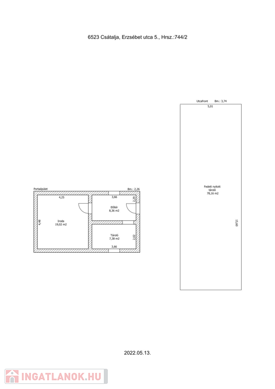 Fedett-nyitott tárolók együttesen 490 nm alapterülettel, targoncával bejárhatók.