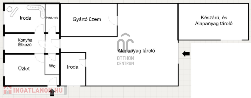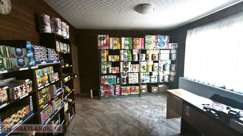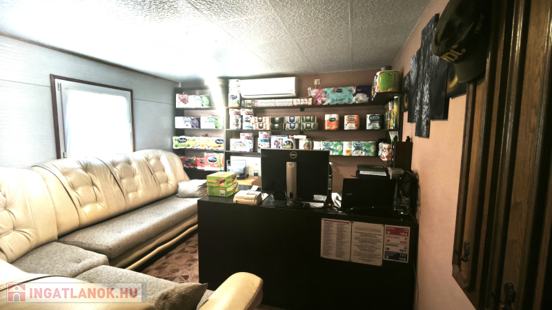 - kb : 63 m2 nettó alapterületű téglafalazatú épület, amely üzlet, iroda, étkező - gépesített konyha, és szociális blokként funkcionál, kamerával, riasztóval ellátva
