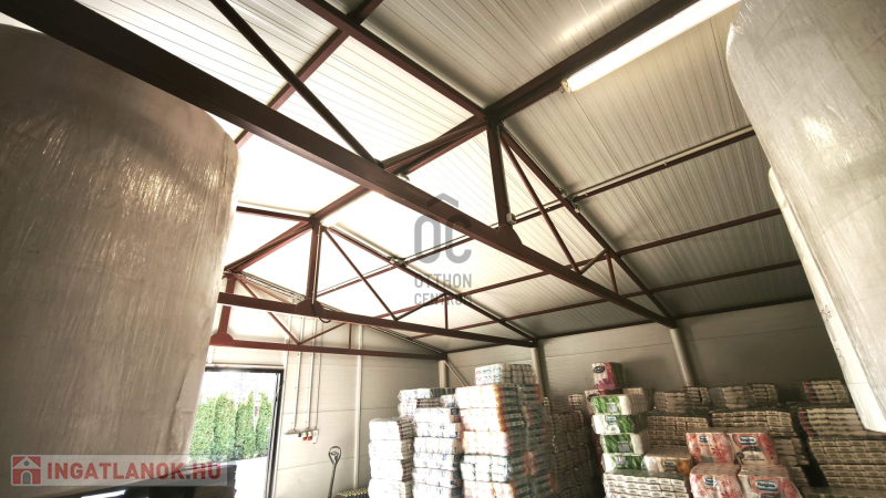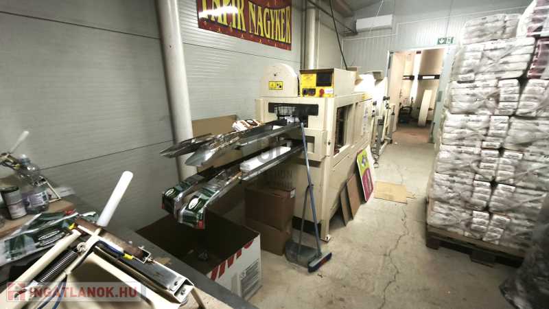 - egy gyártó csarnok, amely kb : 300 m2, könnyűszerkezetes panelból épült, ebben található : egy iroda, papírzsebkendő gyártó egység 2 db egyedi gépsorral, minden felszereléssel, gépekkel, eszközökkel , a gyártáshoz szükséges alapanyagok tárolására alkalmas terület, kamerával, riasztóval ellátva