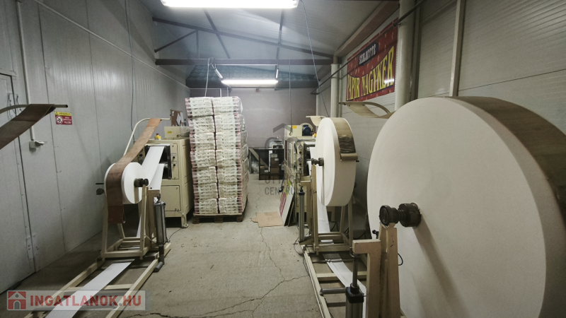 Jelenleg is rentábilisan működő, papírtermékek gyártásával, illetve értékesítésével foglalkozó KFT telephelye akár céggel együtt is eladó.