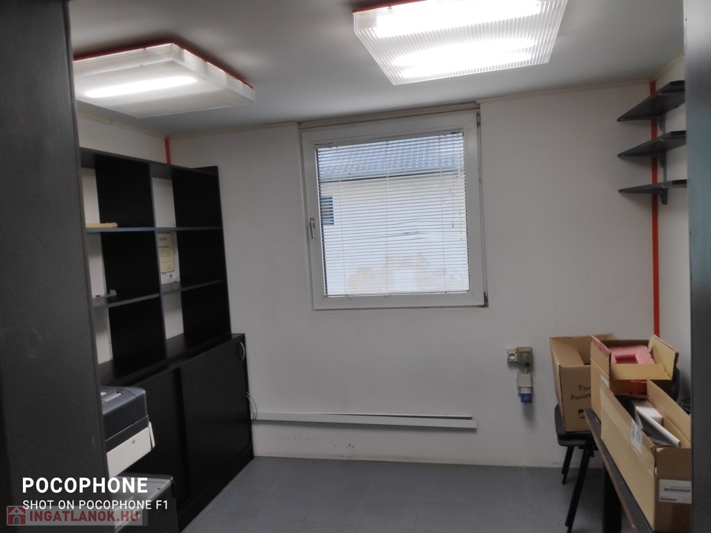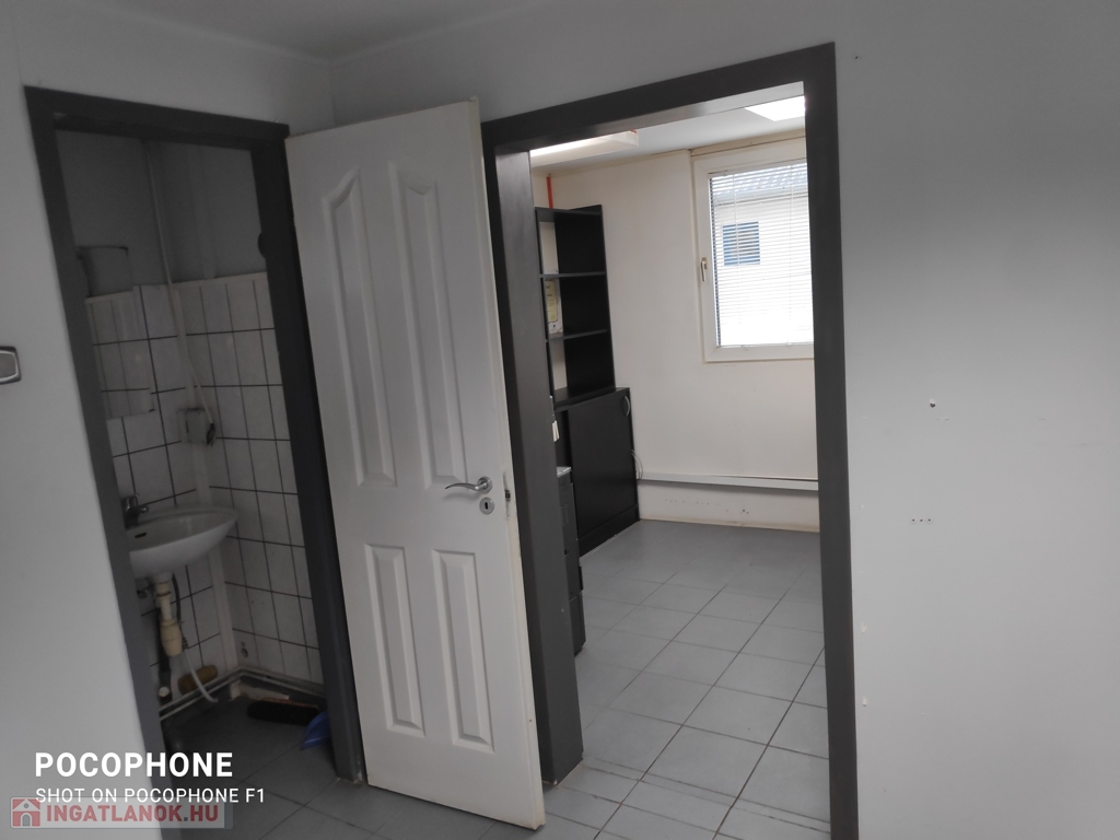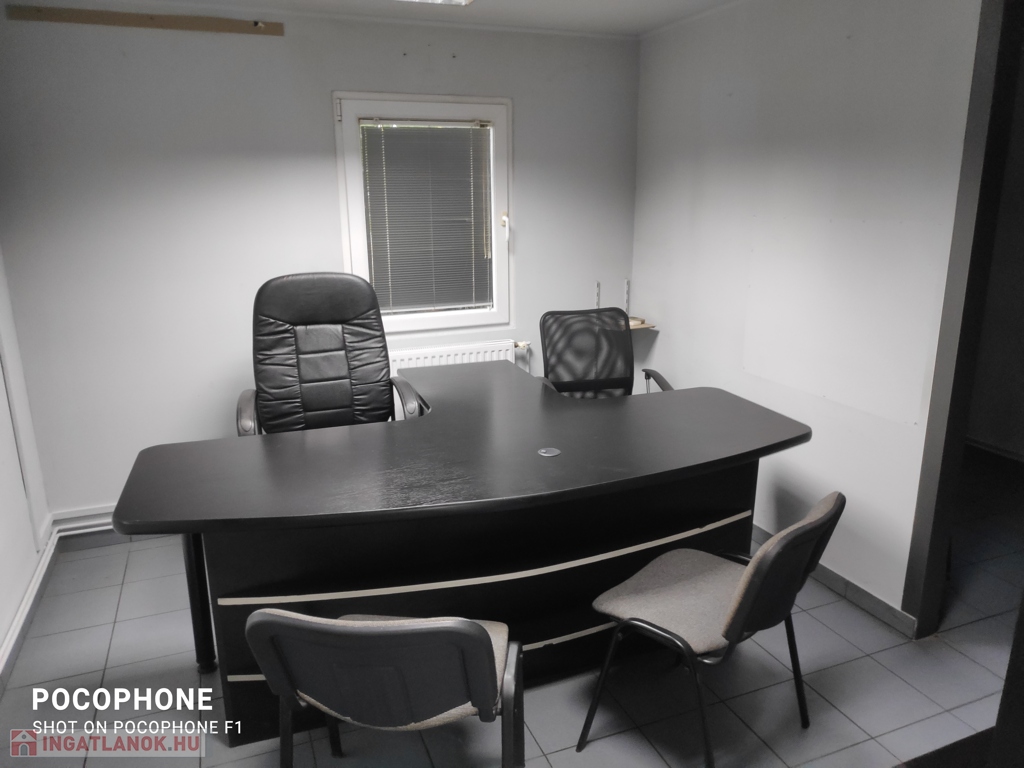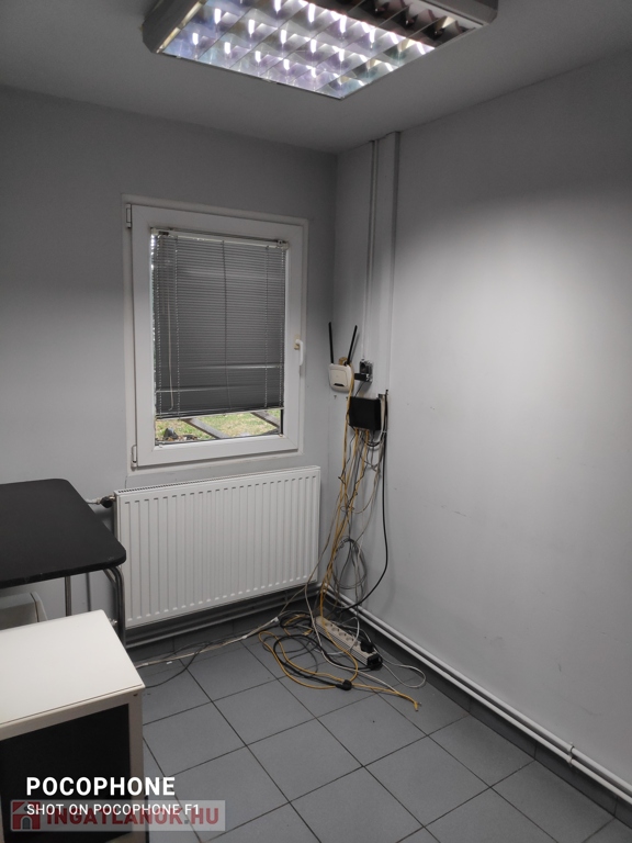 Helyiségei: kis terasz, egy nagyobb közlekedő, 3 db iroda, egy szociális helység (wc, mosdó).